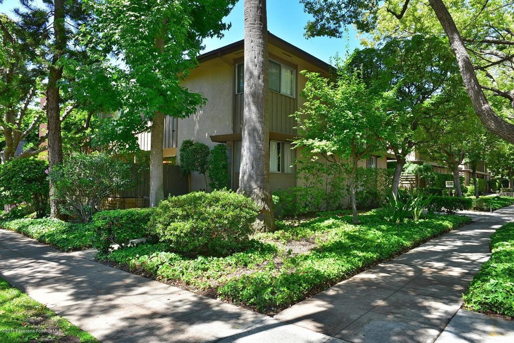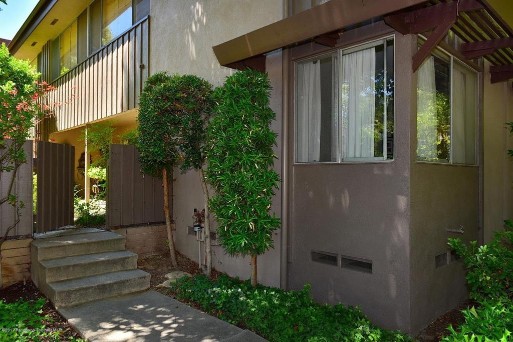 This special single level condo is a corner unit and is on a beautiful tree-lined street just steps from Caltech. There are new HW floors in all rooms except the bedrooms. The LR has charming built in cabinetry, a fireplace and stunning floor to ceiling windows that open up to a large and inviting patio to enjoy the outdoors. There is a formal dining area that leads back to the handsomely updated kitchen featuring gorgeous granite counter-tops, tile backsplash, refaced cabinetry and a European style W/D. There is a nice master suite with ample closet space and another comfy bedroom and bath. The AC unit, electrical panel and HW heater are 3 years old and new copper plumbing as of 1/17. This is a lovely property with much to offer today's discerning buyers. Don't miss this one!