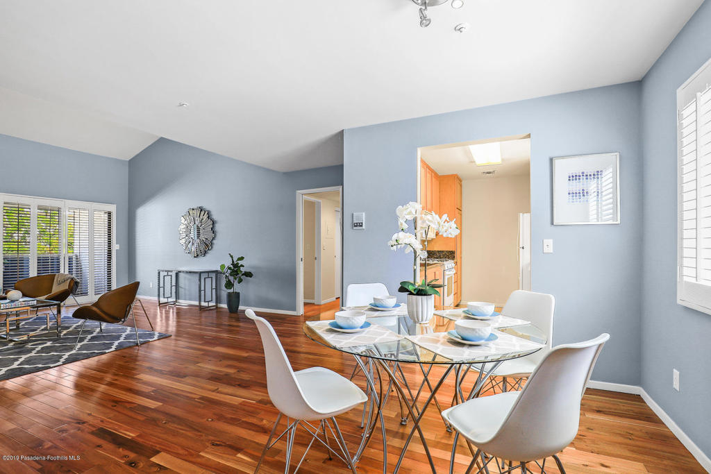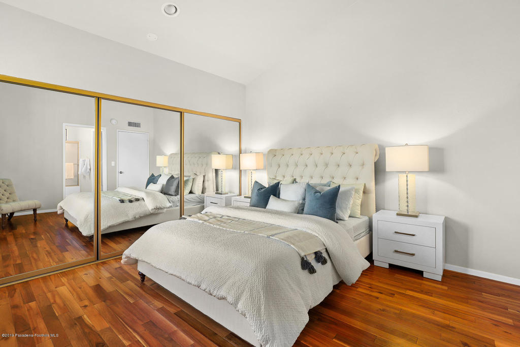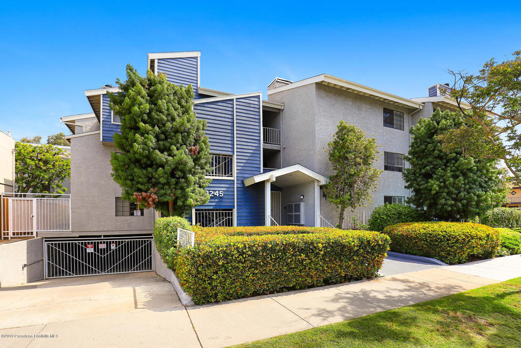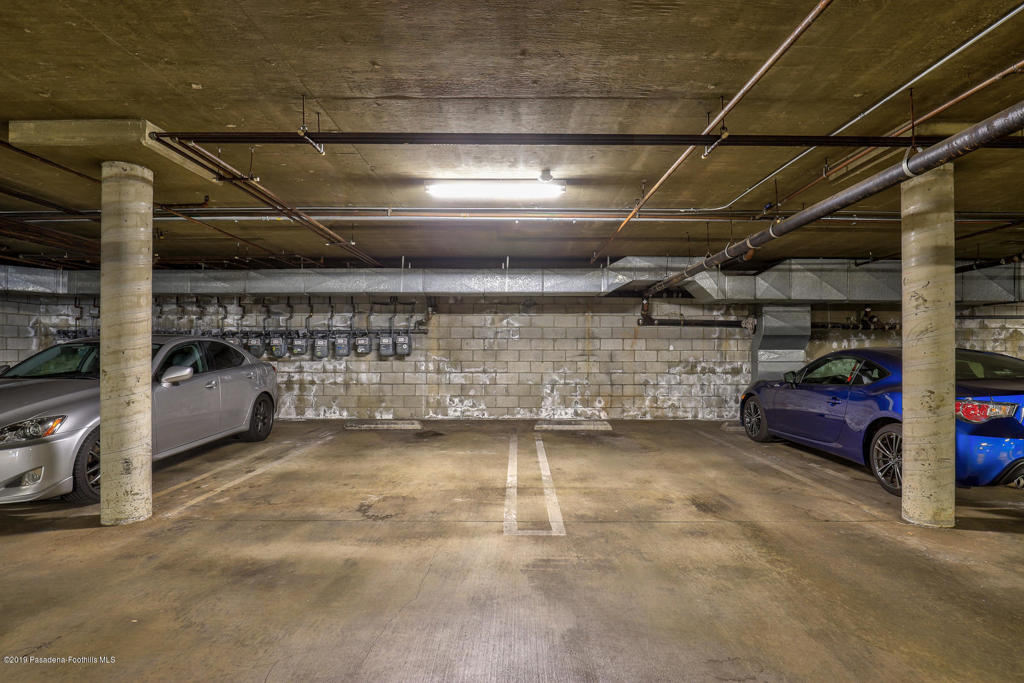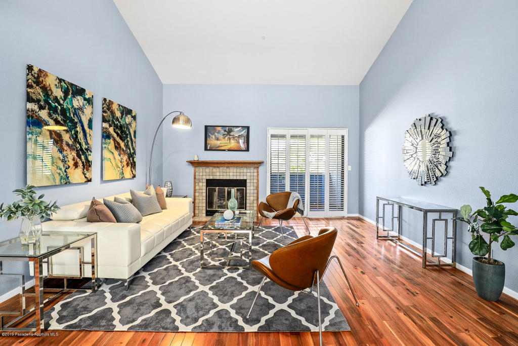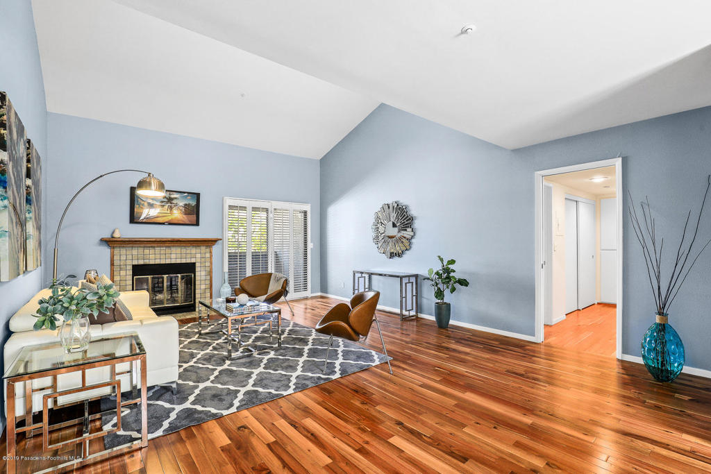 Welcome home to this charming condominium located in the Grant Park East complex in a central Pasadena location. Home features 2 bedrooms one of which is Master Suite. Both rooms have high vaulted ceilings & offer ample wardrobe style closets with mirrored sliding doors. There are also 2 full baths with granite vanities & beautiful tiled floors. This bright & cheerful unit features a vaulted ceiling living space which includes a dining area, fireplace, side recessed lighting & private balcony overlooking roof & tree tops, nice space to enjoy the fresh air or dine alfresco! Throughout the home, the Philippine Acacia wood flooring & plantation shutters add warmth, sophistication & style! The kitchen has marble tile flooring & granite counter tops, light wood cabinets, gas range, built-in microwave oven, dishwasher & refrigerator is included. For added comfort, the home has central air & heat, controlled by a Nest thermostat. There is two subterranean side by side parking spaces. Across the street from this complex is Grant Park, which offers great space for relaxing, sports, exercise, picnicking as well as tennis courts. This security building is well located near Caltech, PCC, South Lake shopping & dining district & all that Pasadena has to offer!