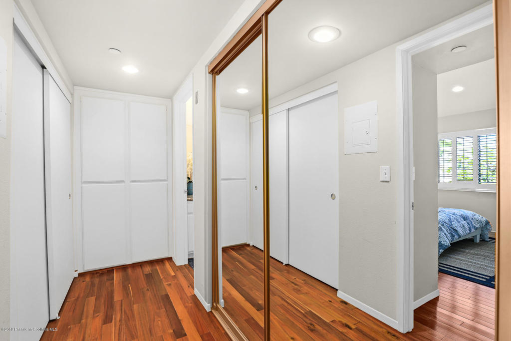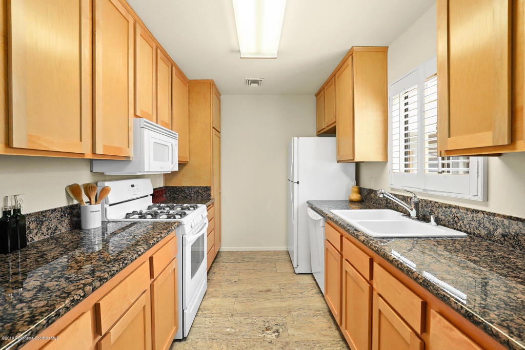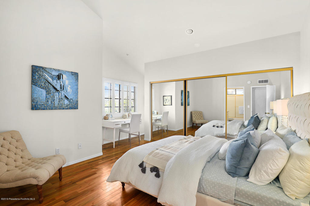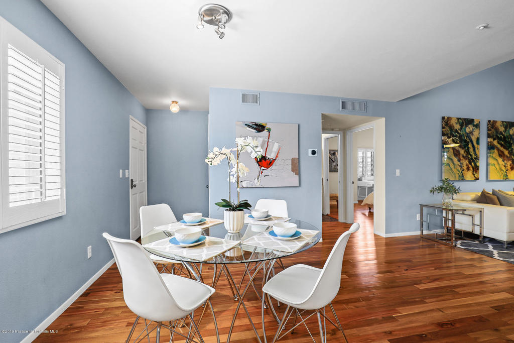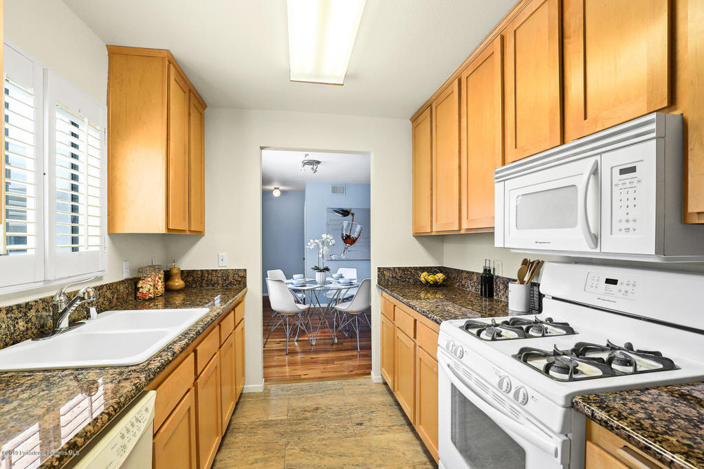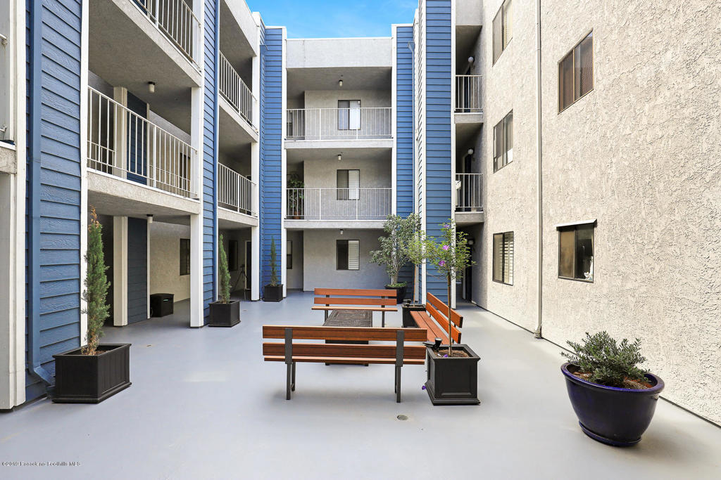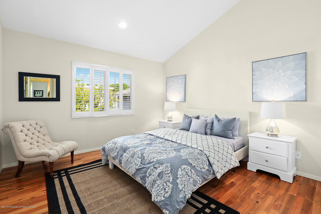 Welcome home to this charming condominium located in the Grant Park East complex in a central Pasadena location. Home features 2 bedrooms one of which is Master Suite. Both rooms have high vaulted ceilings & offer ample wardrobe style closets with mirrored sliding doors. There are also 2 full baths with granite vanities & beautiful tiled floors. This bright & cheerful unit features a vaulted ceiling living space which includes a dining area, fireplace, side recessed lighting & private balcony overlooking roof & tree tops, nice space to enjoy the fresh air or dine alfresco! Throughout the home, the Philippine Acacia wood flooring & plantation shutters add warmth, sophistication & style! The kitchen has marble tile flooring & granite counter tops, light wood cabinets, gas range, built-in microwave oven, dishwasher & refrigerator is included. For added comfort, the home has central air & heat, controlled by a Nest thermostat. There is two subterranean side by side parking spaces. Across the street from this complex is Grant Park, which offers great space for relaxing, sports, exercise, picnicking as well as tennis courts. This security building is well located near Caltech, PCC, South Lake shopping & dining district & all that Pasadena has to offer!