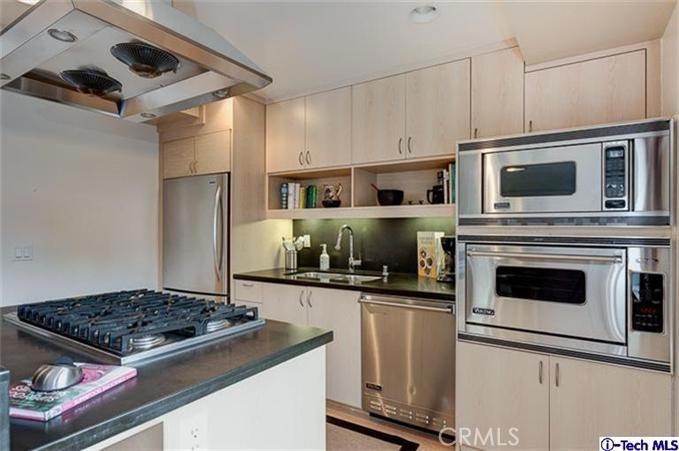 Sleek, spacious, newer condo featuring, wood floors, recessed lighting and high ceilings. Spacious kitchen with center island, six burner range, built-in microwave, dishwasher and much more. Comfortable living room which leads to nice large patio. Floor to ceiling glass doors and windows compliment the dining area. Second bedroom is on the main level along with private hall bath. Luxurious master suite features custom large closet and en-suite bath. Master Bath is an oasis with dual sinks, soaking tub and multiple shower heads. Large loft with third bathroom located upstairs. Convenient side by side parking in subterranean garage with automatic gate. Close to Lake Avenue and Playhouse shopping and restaurants. This truly feels like home with an urban village flare.