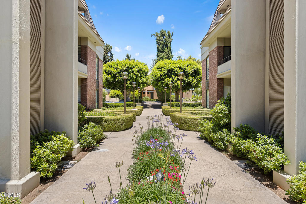 Dubbed Millionaire's Row in 1900, Two Eleven is one of the most desirable South Orange Grove addresses. Consisting of only 14 residences on over an acre of well-lighted, landscaped grounds and manicured French gardens, it is no wonder only five units have transacted in the last 10 years. A ground floor, single-story, end unit, Eight is conveniently located close to the stairway to the secure underground parking (also can be accessed via elevators) and pool and spa. Enter through double-doors to 9' ceilings and oversized doorways and windows allowing for an abundance of space and natural sunlight throughout the home. The Great Room with: fireplace bordered by French doors opening to private front patio, parquet flooring, plantation shutters and dining area, acts as the heart of the home. For a more private setting, the third bedroom has been converted to den/TV room. Estate sized master suite with French doors opening to front patio, walk-in closet with custom cabinetry, double vanities, oversized soaking tub, separate shower and privacy toilet occupies the corner of the home. For the gardener, unit Eight's front and side patio space has been relandscaped and designed for optimal privacy and seasonal beauty. With the openness and architectural features usually found only in large single-family homes, and the security and convenience of South Orange Grove, unit Eight is a rare opportunity to join the small community of prominent Pasadena residents of Two Eleven. Features: *Single-level, ground floor. *Master and Jr Master Suites and 3rd Bedroom, currently being used as den. *3rd bathroom with shower. *Separate laundry room. *Gourmet kitchen with eat-in dining. *High ceilings throughout. *Original oak parquet flooring. *Large partially covered ground floor patio spaces on two sides. *Two dedicated secure parking spaces and storage unit. *Two elevators and stairway to parking. *On Rose Bowl Parade route. *Pool, spa and clubhouse.