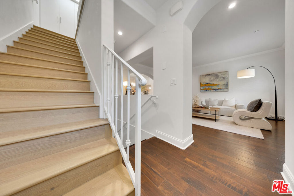 Welcome to this exceptional townhome nestled on a picturesque tree-lined street in one of Pasadena's most sought-after neighborhoods! This spacious residence offers privacy and tranquility within an exclusive gated complex of only nine units. Enjoy an unbeatable location near Caltech, PCC, the Huntington Library, Trader Joe's, Whole Foods, H-Mart, Pasadena Library, the Rose Parade route, and a vibrant selection of restaurants and cafes. Step inside to find stunning wood flooring throughout the first-floor living spaces, complemented by a cozy fireplace and large windows that create a warm, inviting ambiance. The modern kitchen features custom wood cabinets, sleek granite counters, and stainless-steel appliances. French doors off the dining room open to a private outdoor patio/backyard, ideal for barbecues or relaxing evenings. Architectural elegance shines with arched ceilings, crown molding, and a striking skylight above the staircase, bathing the interior in natural light. The first level includes a stylish powder room for convenience. Upstairs, two expansive primary bedrooms offer walk-in closets, private balconies, en-suite bathrooms, and soaring coved ceilings. A laundry closet with a full-sized washer and dryer is conveniently located between the bedrooms. Parking is effortless with a spacious, private two-car garage featuring wall storage cabinets on the gated, subterranean level, providing direct unit access. Recent upgrades include: Fully renovated kitchen, living room, two en-suite bathrooms, and powder room, with new engineered wood flooring on the second floor , Built-in cabinet storage system in the garage , Renovated backyard with concrete slab , Custom built-in cabinets with marble backsplash niche in the dining room and second-floor hallway. This home offers unmatched comfort and spacious living in a secure, convenient Pasadena location. Schedule a viewing to experience this luxurious residence!