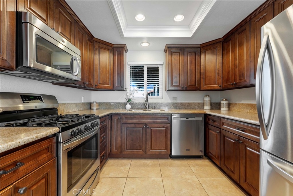 Private & Quiet Pasadena living! Top one-level front corner unit, totally remodeled in 2014. Spacious flowing floor plan features 2 master suites and walk-in closets. Extra spacious living/family room is airy and bright with large windows and recessed lighting, facing a very quiet, wide and tree-lined street. Laminate flooring throughout the unit. Two extra storage rooms alongside the front foyer. Completely updated kitchen has granite countertop, tile flooring, stainless steel appliances, gas range/oven, microwave oven & refrigerator, open into the spacious dining areas. Recent replaced double pane windows throughout, brand new hot water tank and dishwater install in 2023. Gated underground parking provides 2 side-by-side subterranean parking spaces directly under this unit, with an extra good size locked storage room right in front these 2 parking spaces. This 2-story 16-condo complex is gated, provides extra security. It features a swimming pool, spa, BBQ grill and cook out area. Community Recreation room/Clubhouse & laundry room are right next to this unit. HOA fee covers all amenities, water, trash, fire insurance, and earthquake insurance. Conveniently locates near CVS, Vons, PCC, Caltech, easy access 210Fwy, public transportation nearby. The library just few steps away. Few minutes from the Old Town Pasadena but away from the traffic and noise. Condo is Staged, furniture is not included in the sale. Move-in ready!