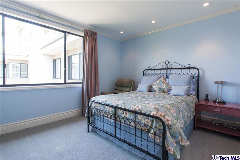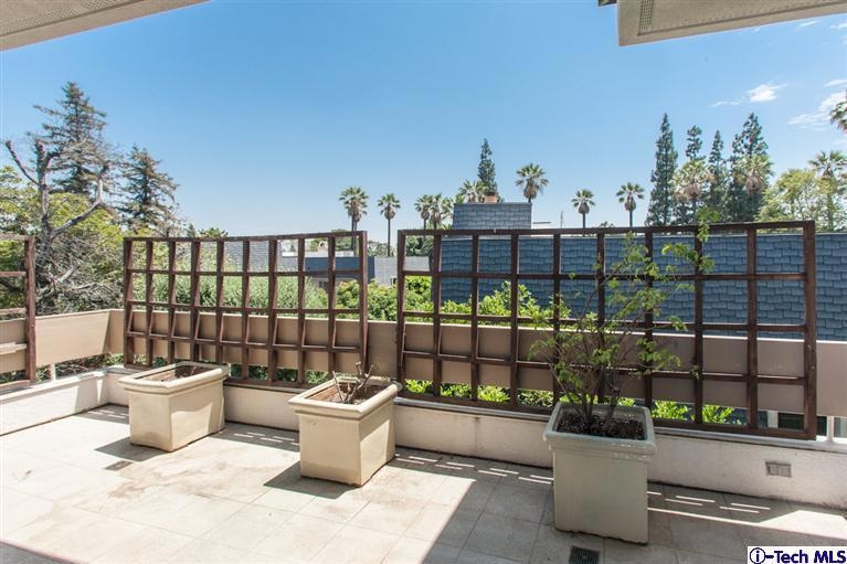 A one-of -a-kind dramatic penthouse in one of the most exclusive buildings on South Orange Grove. Upon entry you will notice the expansive use of glass windows, doors and skylights which allow natural light to flood the unit creating a fabulous indoor/outdoor environment. Tree top vistas as well as Rose Parade views can be seen from inside or from any one of the numerous balconies. Quality appointments include formal entry, paneled library/office, powder room, crown molding, recessed lighting, pocket doors, wet bar. Remodeled kitchen w/generous eat-in area & plenty of built ins. Four bedrooms with en suite baths. The grand Master retreat has a fireplace, fabulous closet and it's own personal balcony. Laundry room w/an abundance of custom cabinets for storage, back stair case, three car side by side parking spaces, a large secured storage room located in the gated garage. Two semi-private elevators exclusively used by the 2 penthouse owners.