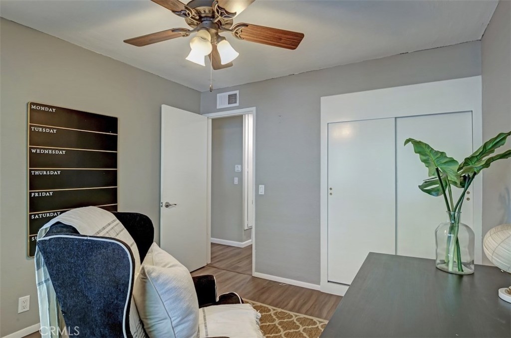 Situated in a great neighborhood of Pasadena, Euclid Gardens is a collection of single level condominiums. This top floor unit has been lovingly maintained, updated with newer laminate floors, dual pane windows, and freshly painted with designer colors. The unit has 2 bedrooms and 2 bathrooms, an open living room, dining area, and kitchen, as well as ample storage throughout. There are 2 large patios and large sliding glass doors to allow ample natural light into each space. This home is centrally located on a treelined street near schools, grocery stores, shopping centers, restaurants, with convenient freeway access, all with a very low $265 monthly HOA fee.