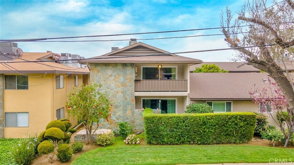 This condo has a tranquil garden entryway filled with trees, plants, and flowers. This space is very quiet and relaxing. One of only twelve units. This is an upstairs corner unit with a spacious balcony and an amazing view at night. You don't want to miss this spacious 2 bedroom, 2 baths very well taken care of and ready to move in. When you enter the front door to the large living area first thing you see is the beautiful stone fireplace. This is the perfect room to cuddle up and enjoy a warm fire and movie. The balcony is off the living area. Then a spacious dining area flows into the kitchen. The dual pane windows have gorgeous new shutters. The kitchen has lots of storage and very nice Kenmore Elite stainless steel appliances. Two full bathrooms with lots of space. Both bedrooms are large in size. The master room has a wall of closet space perfect for his and hers. There is a shared laundry room downstairs. This unit comes with a covered parking space with lots of storage. Location is key to this condo. 1.2 miles to the 210 freeway, located in Hastings Ranch. The walking score is amazing with parks, stores, restaurants all nearby.