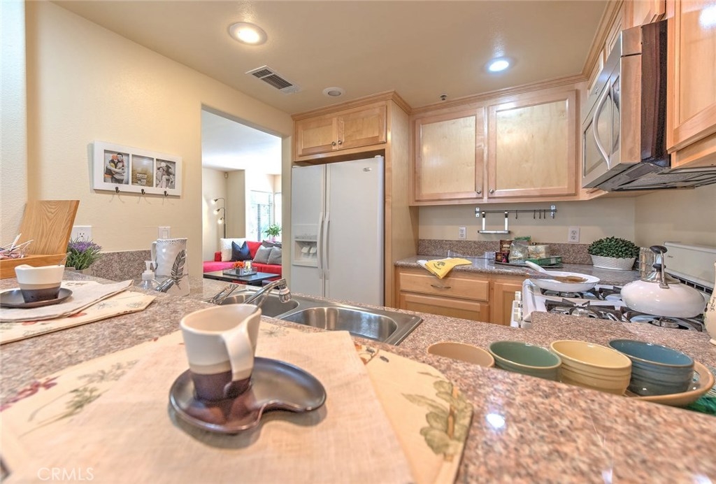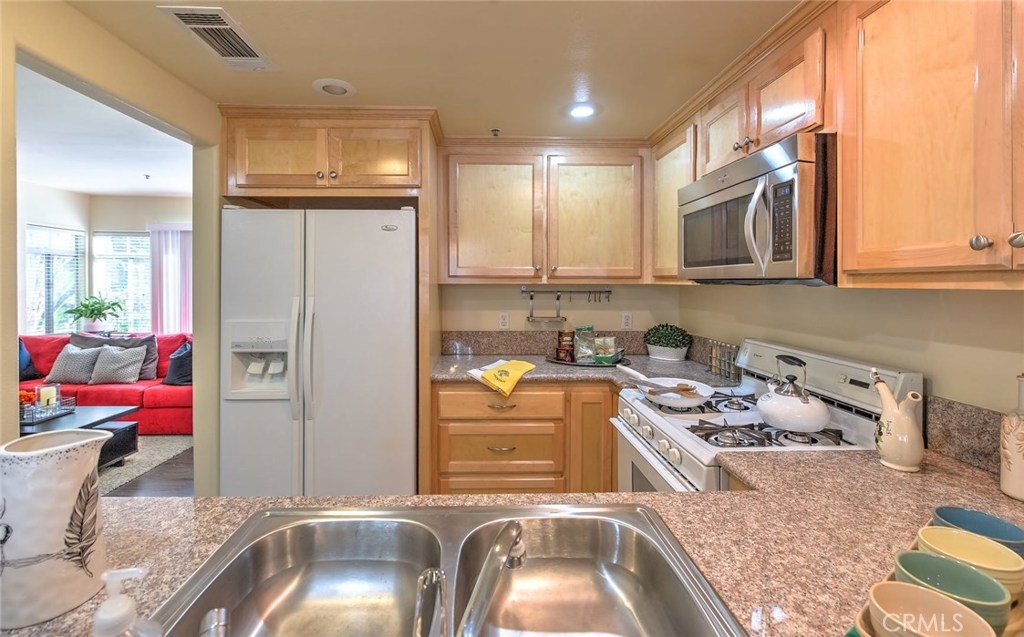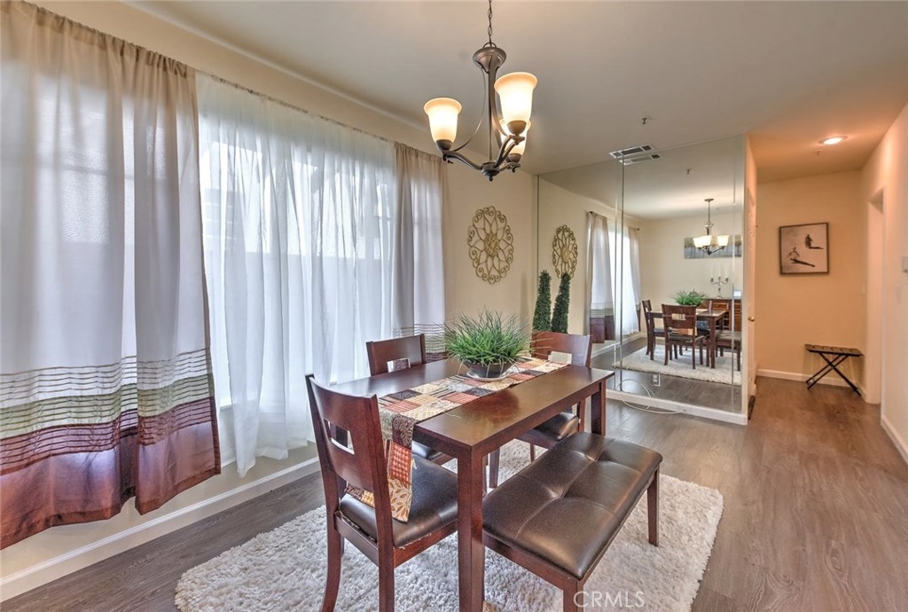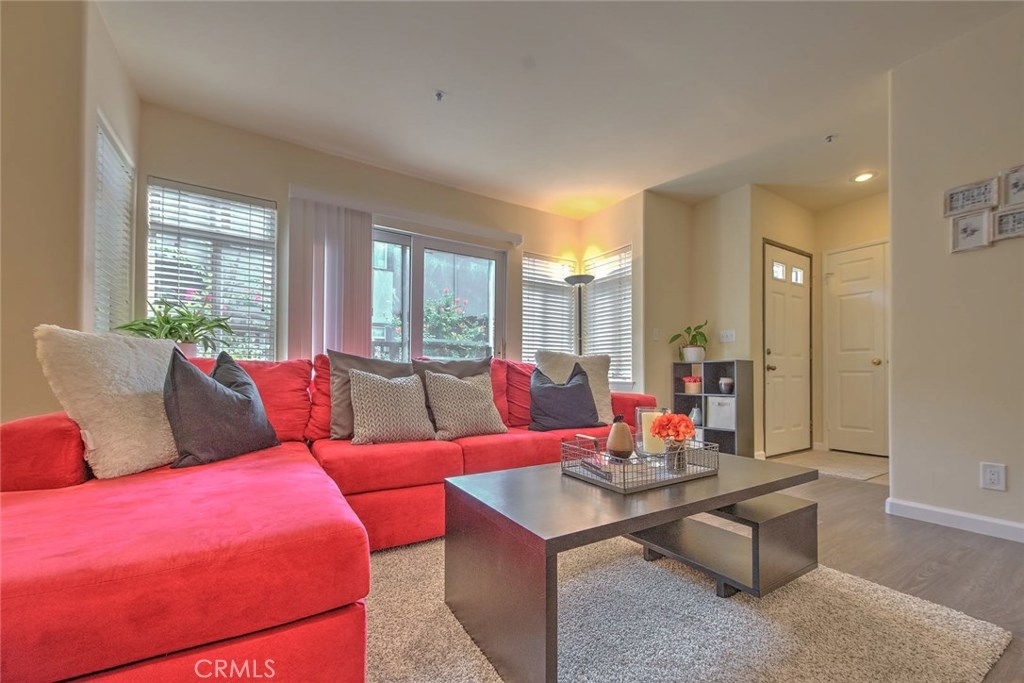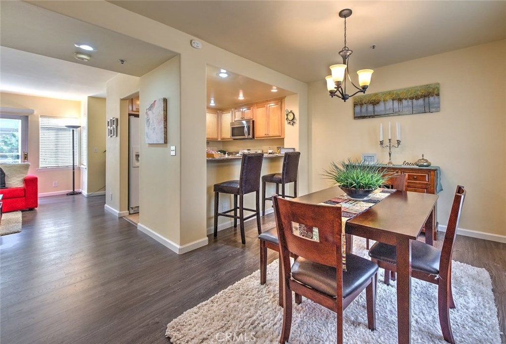 Excellent Location in Town. Located directly across from Pasadena City College. Only minutes from Old Town Pasadena & Cal Tech. It is a Beautiful, Newer Complex on a Tree-lined street. Wonderful upgraded town home. Great floor plan. New laminate wood floor throughout the first floor. Recessed lighting in all of rooms. Cozy Living room with marble fireplace and there is a sliding door that leads into the private patio. Spacious Formal Dining with mirror wall and adjacent to breakfast bar overlooking the kitchen. Remolded kitchen with granite countertop and newer cabinets. The powder room is in same level. The home also features Two Roomy Master bedrooms with ceiling fans and walk-in closets upstairs. Staircase with skylight. There is also a laundry closet with washer and dryer upstairs. Direct access to the large two car garage with extra storage space. Secured gated Complex. Relatively low HOA fee. A must see one ! Do not miss the opportunity.