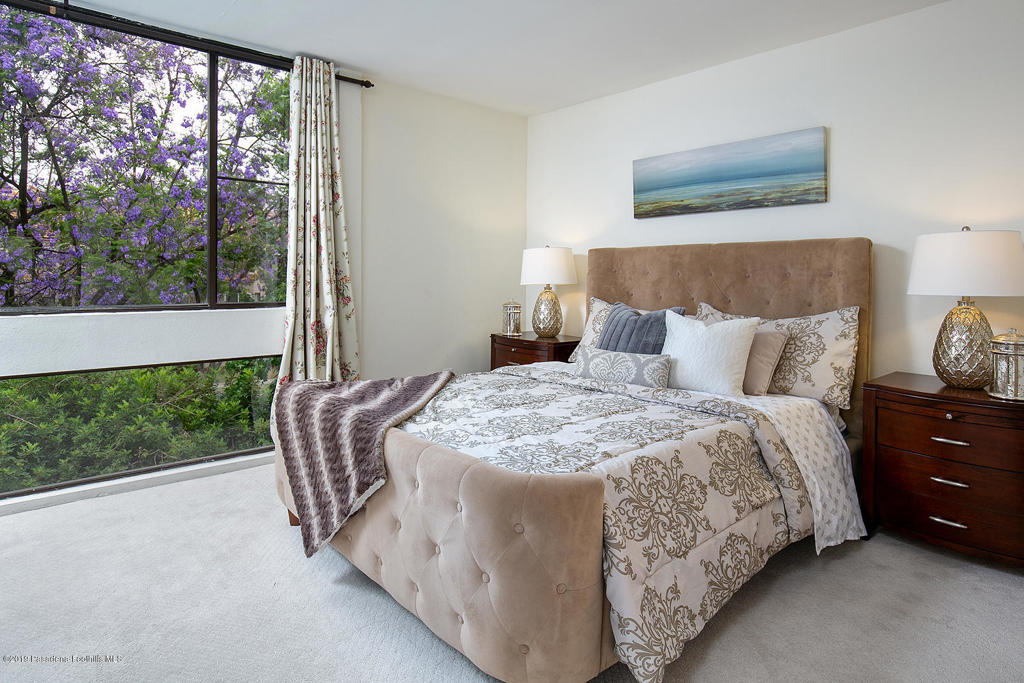 If you are looking for a sharp and spacious condo in central Pasadena come check out this lovely townhouse style 2 BR/2.5 BA home located just north of Madison Heights. This tri-level condo has a nice formal entry that opens to the dining area with a courtyard view and an updated kitchen with soft close cabinets, stone counter-tops and Bosc stainless steel appliances. The spacious living room has handsome marble tile floors, a cozy fireplace, high ceilings and access to the front balcony. Upstairs you will find the gorgeous master suite with 2 closets, a beautifully updated bathroom and a large picture window to enjoy the lovely Jacaranda tree's currently in bloom. There is also an additional well appointed bedroom and bathroom on this level. Downstairs there is a large bonus room with a laundry room and half bath that can be used as a 3rd BR, family room, office or whatever suits your needs. Parking is side by side in the secure subterranean garage. This is a fantastic location as you are close to Old Town, the Paseo, the Metro Gold Line, South Lake, Caltech and all that Pasadena has to offer. Don't miss this opportunity to live in one of Pasadena's most desirable neighborhoods.