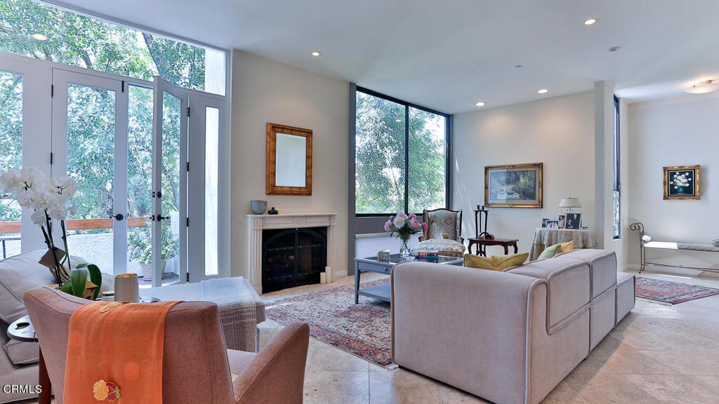 This stunning top floor penthouse in prime Pasadena location offers convenient accessibility to Paseo Colorado, Old Pasadena and the Playhouse District. Unparalleled privacy, 9' ceilings and limestone floors are just a few of the special features here. Expansive windows and 4 skylights make this space exceptionally light and bright. Exquisitely appointed, the living room offers amazing treetop views, custom 92' tall French doors opening to a private balcony, gas fireplace and recessed lighting. The attractive kitchen features built-in wine fridge, gas cooktop, custom track lighting, Culligan reverse osmosis water filtration system, skylight, stone countertops and walk-in pantry. Both baths have been tastefully remodeled with stone and marble accents. The spacious owner's suite is a lovely retreat and features bamboo flooring, 92' French doors opening to private deck, and walk-in closet. Additionally, there's a second walk-in closet for the second bedroom and an abundance of storage in numerous closets throughout. There are also skylights in the owner's suite bath, closet and separate laundry room. With nearly 400 square feet of private deck space, this truly is an exceptional find for spectacular sunsets, quiet and peaceful living.