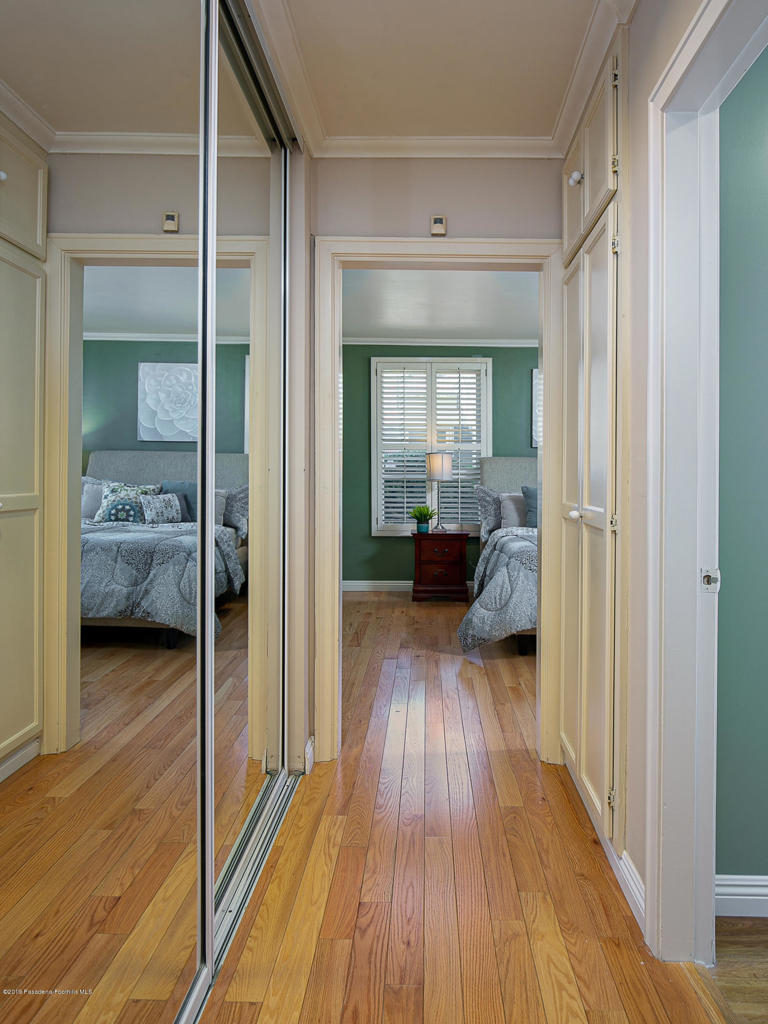 This is a lovely and unique single level, ground floor unit in the desirable Oakland Place Complex. This complex has 6 individual buildings with green space between them and this unit is in the back building which only has 2 units. This charming condominium is more like a single family home and features 3 BR/2 BA, 2 large and private brick patios, hardwood floors, handsome fireplace, custom cabinets and bookshelves throughout. With crown moldings and baseboards, this property has tons of character. The living room is quite spacious and is adjacent to the dining area which is large enough for a full size dining room table. The kitchen was recently remodeled with ample cabinets, quartz countertops and stainless steel appliances. The spacious master suite has 2 large windows, great closet space and is attached to the master bath with spa tub, double sinks and separate shower. There are 2 additional good size bedrooms with built-ins and in-unit laundry. There are two side by side parking spaces in the carport with additional storage. This property is located just north of Madison Heights and is close to Old Town, the Metro Gold Line and the South Lake Shopping District. This is a great opportunity to live in one of Pasadena's most desirable neighborhoods!