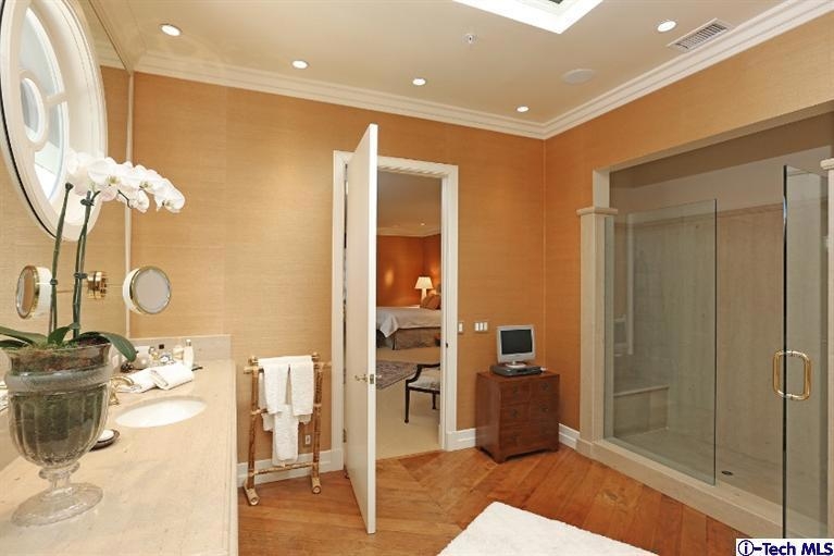 Stylish & elegant, this sophisticated penthouse occupies the entire top level of 521 South Orange Grove. Gated gardens, a convenient elevator & impressive double door entry introduce this grand single level condo residence. The impressive living room has rich walnut floors, fireplace & French doors to the terrace. The formal dining room has antique limestone flooring, a fireplace & French doors to the terrace. The gourmet kitchen w/ skylights, granite counters, center island, breakfast area & stainless appliances is an entertainer's delight. A large library with built-ins is adjacent the living room. The bedroom wing consists of a guest suite w/ lovely bath & a marvelous master suite w/ fireplace, French doors & specially appointed his & her baths & walk-in closets. There is a bright office w/ built-ins, an attractive powder room & a laundry room. Features include custom hardwood flooring, 10' ceilings, dual pane windows, 19th century French limestone mantels & parking for 3 cars.