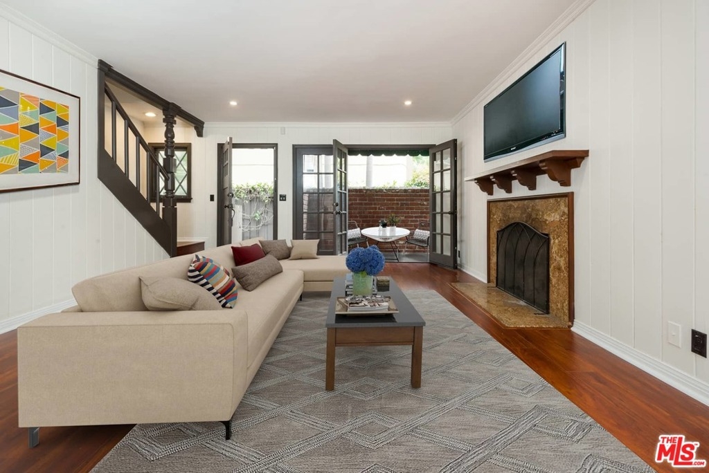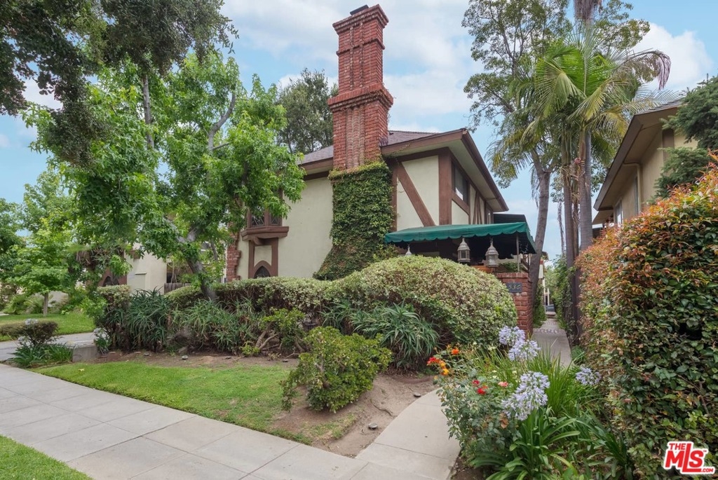 Charming two-story front facing townhome centrally located adjacent to the desirable Madison Heights neighborhood and nearby Gold Line Metro, Paseo Colorado, Old Town Pasadena, Arroyo Parkway, Playhouse District and Lake Avenue shopping. English Tudor-style building features timber and brick, wrought-iron accents and green canopies. The 2-bedroom, 1.5 bath condo has hardwood floors throughout and good light. The first floor features a central fireplace in living room, a dining area and open concept kitchen with breakfast bar, a half bath, and french doors lead to a spacious private patio. Upstairs the bedrooms overlook the tree-lined street. A bathroom with marble vanity and hexagonal floor tiling and extra hallway storage complete. Central air conditioning and heat. The community is only 8 units with low HOA dues, on-site laundry, 1-car covered carport parking with extra storage area. HOA will allow washer/dryer install in unit.