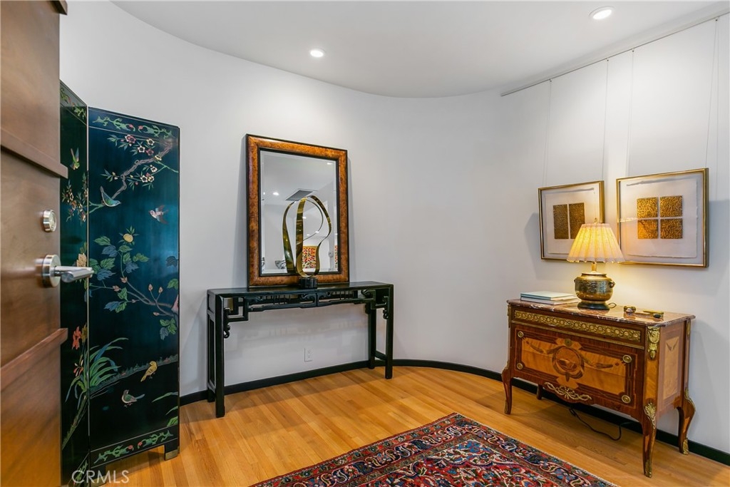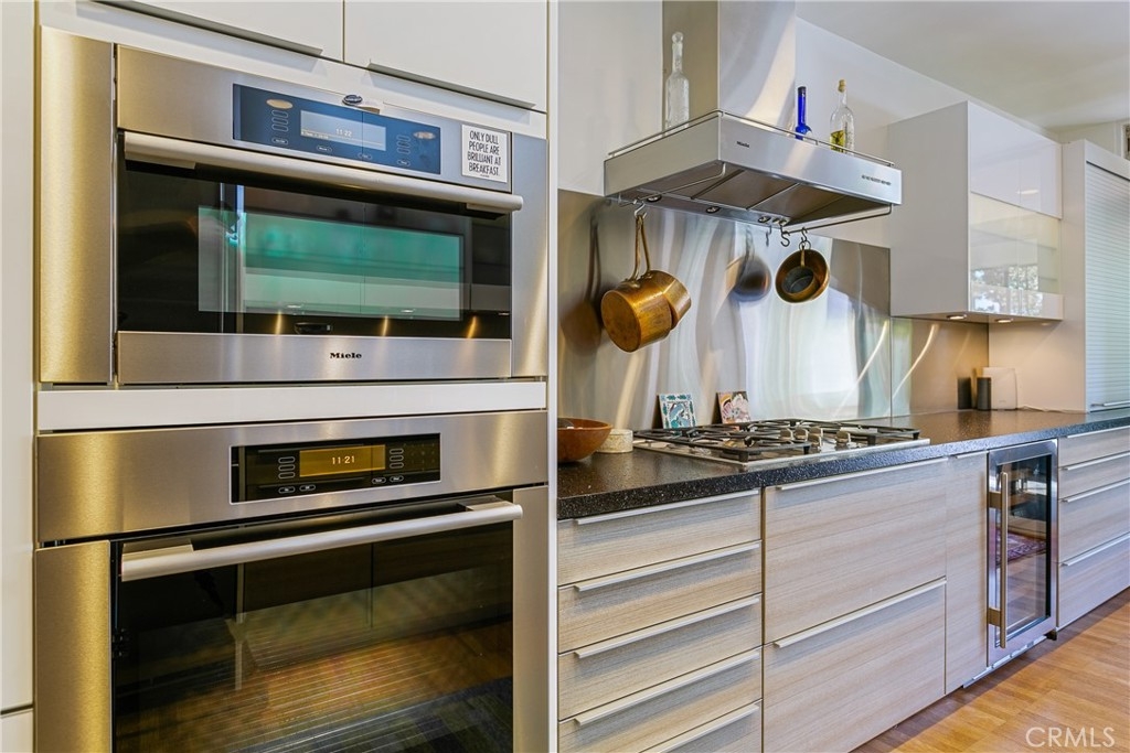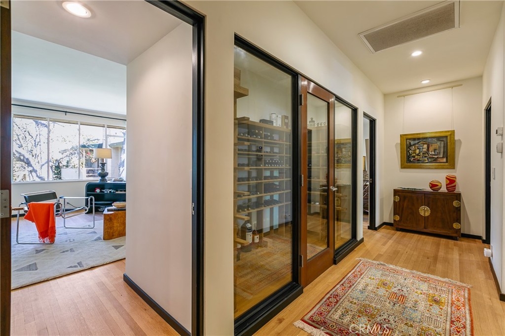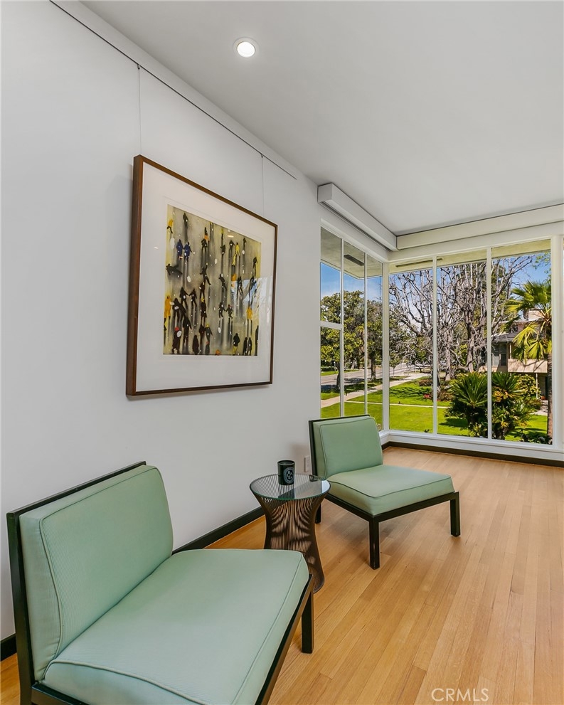 The Capri, as 660 South Orange Grove Boulevard was originally called, was built in in 1952. There are only 12 units situated on over 1 1/2 acres. Unit B is the largest and was originally occupied by the builder. You enter into a dramatic foyer that leads to a large, open living room with multiple floor to ceiling windows, offering panoramic views. An extensive renovation was performed. The original entrance door was replaced by double asymmetric mahogany doors. Downlighting was added throughout. A modern marble mantle was added in the living room. The hardwood floors were refinished in a light natural color matte finish. A contemporary kitchen, designed by the Italian firm Poggenpohl, was installed with Miele and Liebherr professional quality stainless appliances. Off of the hallway, is a temperature controlled wine room which holds approximately 325 bottles. The three ensuite updated bathrooms were designed by noted Pasadena architect Doug Ewing. A powder room completes the bath count. Gallery quality picture hanging systems were mounted in several rooms and display the owners art collection. In addition, there are two storage rooms. There is also a large attic. In addition there is a private two car garage conveniently located near the unit. Each of the 12 units owns a 1/12th interest in the additional guest parking. This is a unique opportunity to own a large, high end midcentury condominium at a price far more reasonable than new construction offered on the Boulevard.