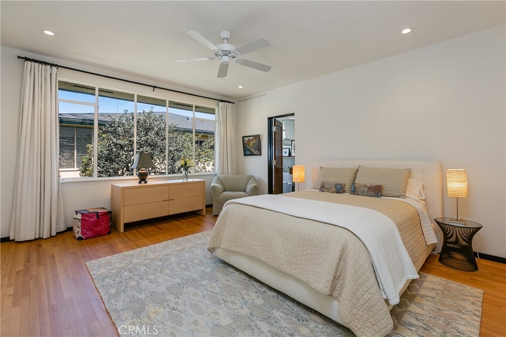 The Capri, as 660 South Orange Grove Boulevard was originally called, was built in in 1952. There are only 12 units situated on over 1 1/2 acres. Unit B is the largest and was originally occupied by the builder. You enter into a dramatic foyer that leads to a large, open living room with multiple floor to ceiling windows, offering panoramic views. An extensive renovation was performed. The original entrance door was replaced by double asymmetric mahogany doors. Downlighting was added throughout. A modern marble mantle was added in the living room. The hardwood floors were refinished in a light natural color matte finish. A contemporary kitchen, designed by the Italian firm Poggenpohl, was installed with Miele and Liebherr professional quality stainless appliances. Off of the hallway, is a temperature controlled wine room which holds approximately 325 bottles. The three ensuite updated bathrooms were designed by noted Pasadena architect Doug Ewing. A powder room completes the bath count. Gallery quality picture hanging systems were mounted in several rooms and display the owners art collection. In addition, there are two storage rooms. There is also a large attic. In addition there is a private two car garage conveniently located near the unit. Each of the 12 units owns a 1/12th interest in the additional guest parking. This is a unique opportunity to own a large, high end midcentury condominium at a price far more reasonable than new construction offered on the Boulevard.