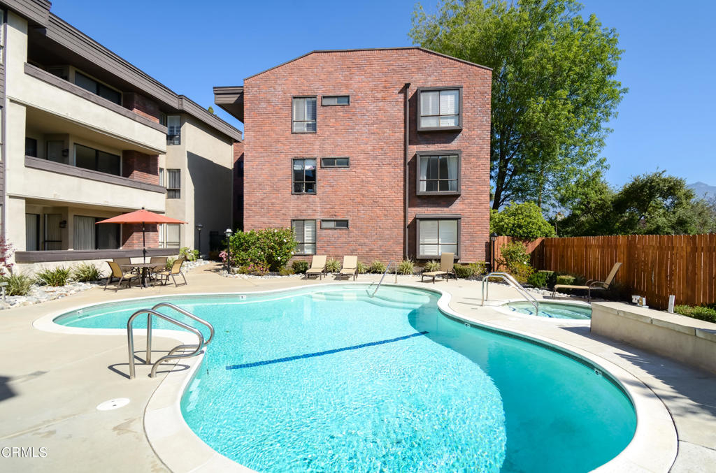 Spacious and light filled condo in the heart of Pasadena boasting great living space and touches of its original 1970s flair. The unit is towards the interior of the community with nice privacy. The living room features 9-foot ceilings and recessed lighting, lending a roominess you don't often feel in a condo, enhanced by the charms of a fireplace and retro minibar. The welcoming kitchen has an adjacent laundry area, breakfast nook and plenty of cabinet space. Sliding doors beckon you onto a serene patio, made all the more private by the surrounding foliage. The traditional dining room offers an area for entertaining, and tile floors adorn the high-traffic areas such as the entryway, kitchen and bathrooms. The primary bedroom features a full bath with a separate, updated vanity and a walk-in closet. Two assigned parking spaces come with the unit and offer additional storage space up top. This inviting gated complex has flowering pathways, a pool and spa and is located just minutes from the finest shopping and dining that Pasadena has to offer. Adjacent to Madison Heights, the location is ideal with close proximity to CalTech, JPL, the new Kaiser School, Old Pasadena, and the freeway.