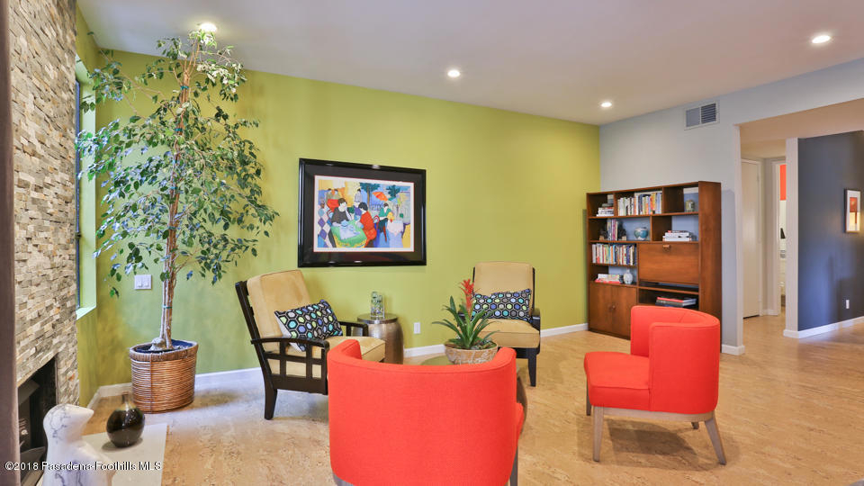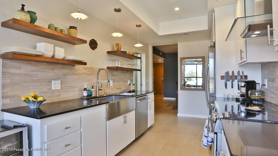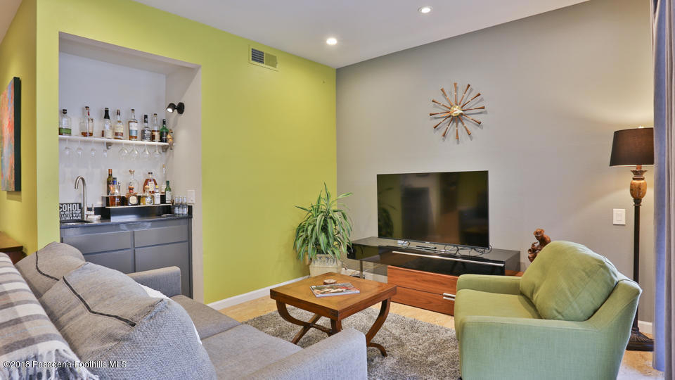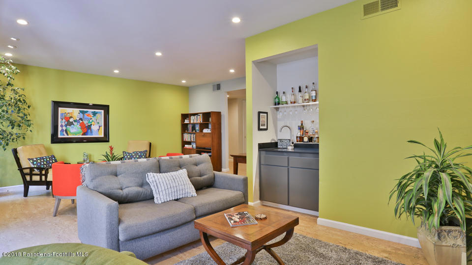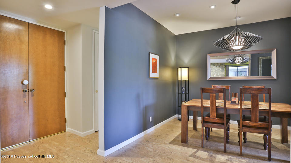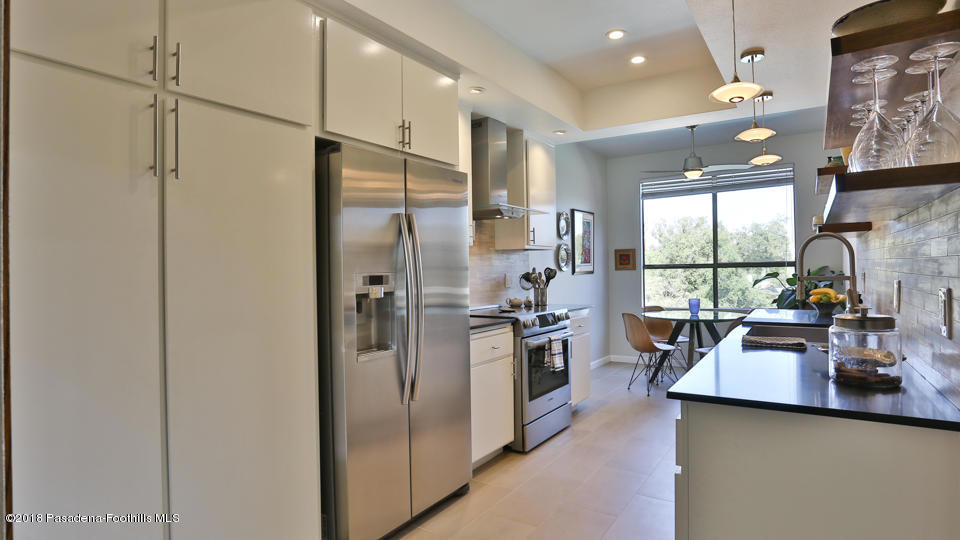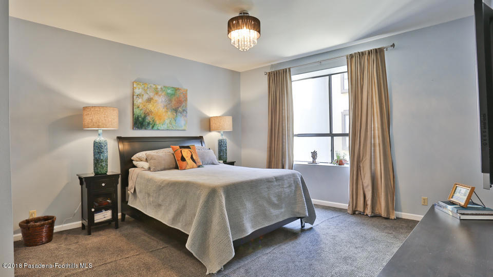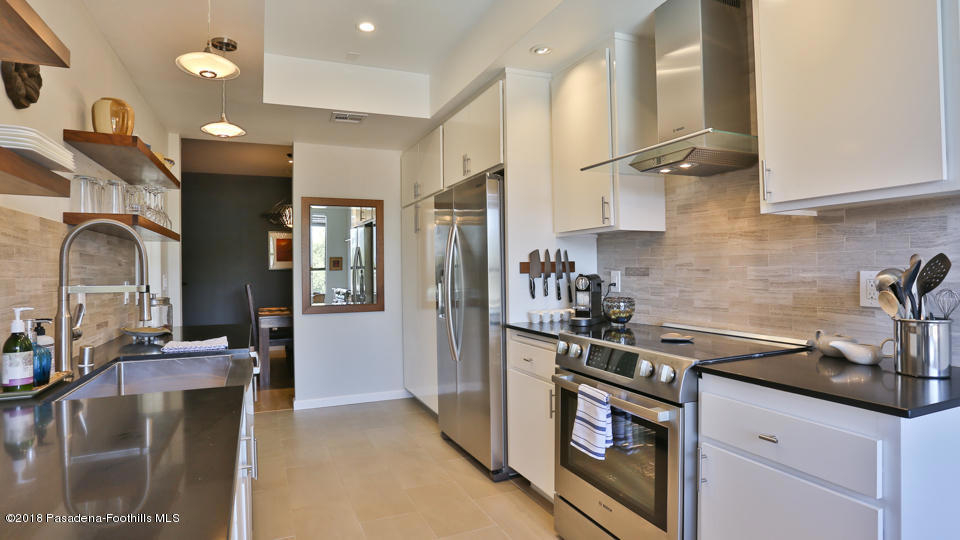 Located in the thriving South Lake district, this stunning residence is steps from some of the best dining and shopping in Pasadena. Ultra-chic appointments include elegant fireplace with marble hearth and stone facing, high ceilings with LED recessed lighting, durable cork flooring, and stylish custom colors throughout. The renovated kitchen offers sleek black quartz countertops, stainless steel Bosch appliances, floating open shelves made of walnut, and light-filled breakfast nook with east-facing window offering views to the pool. Both baths have been remodeled and feature glass tile and marble accents, vessel sinks, oversized glass shower with bench. The formal dining room is perfect for intimate dinners or larger-scale entertaining. Adjacent to the living room is a study area with working wet bar and glass shelving. Additional features include 1-year old central air system, private balcony, in-unit laundry room and walk-in closet in the owner's suite. The association pool and spa were recently renovated (spa to be completed soon). With a walk score rating of 81 and bike score of 90, this stylish condo is ideal for today's urban dweller.