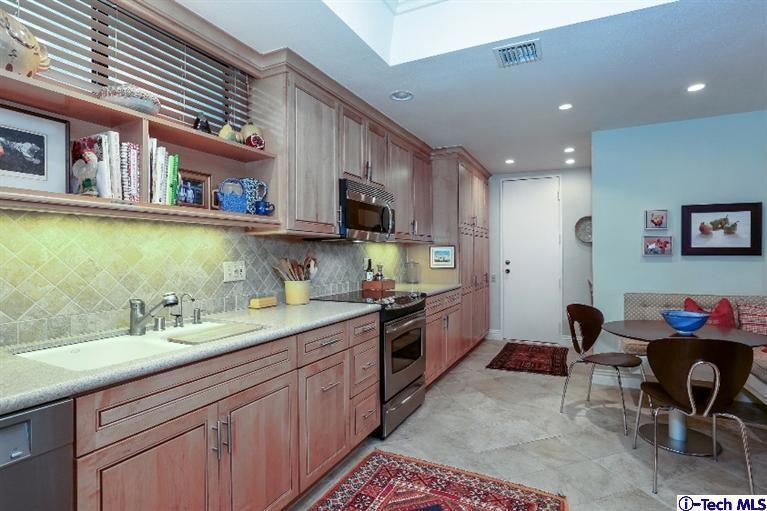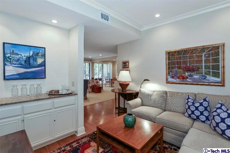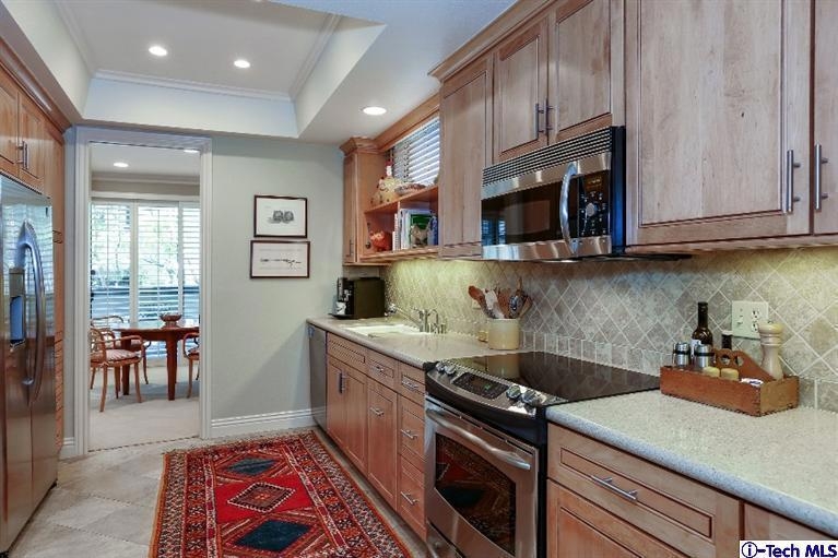 This Sophisticated, extensively remodeled condo with no common walls has beautiful finishes that wrap you in style. Likely one of the finest units in the complex, it has a Gourmet kitchen with Silestone counter tops, stainless appliances(included) & a custom built-in eating area. An expansive living room with fireplace opens to the dining room & a brick patio balcony with custom lighting. A cozy Den with built-ins could also serve as an office. The lovely master suite features a recently updated bathroom & lengthy walk-in closet. New dual-paned windows throughout, in-unit laundry, California Closets, crown molding, recessed lighting & custom cabinetry are just a few of the premiums included. Also featured: Central air/heat, a Sparkling pool with spa & Subterranean gated garage with 2 car parking & no-stairs access to the unit. An exceptional home in a desirable complex. Just 1/4 mile to the prestigious South Lake District & also convenient to nearby Caltech, San Marino & the Langham.