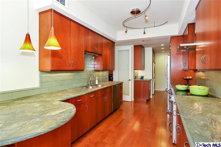 This Sophisticated top floor end unit condo with no common walls has beautiful finishes that wrap you in a sense of luxury the minute you enter this exceptional unit. Gourmet kitchen with marble counter tops, stainless appliances included and delightful eat-in area. Expansive living room with wet bar and fireplace opens to a private balcony with tree-top views. The lovely master suite features a large recently updated bathroom and walk-in closet. There is an additional service entrance through the in-unit laundry & there are no stairs encountered from car to unit. Other features include Central air and heat, a Sparkling pool with spa & Subterranean gated garage with parking for 2 cars and storage unit. An outstanding unit in a desirable complex. Just 1/4 mile to the prestigious South Lake District and also convenient to nearby Caltech, San Marino and the Langham Hotel.