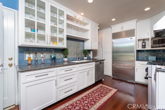 Built in 1951, created by noted architect Lionel Mayell, a prolific developer of high quality apartment complexes in Pasadena and Los Angeles. This complex was recently featured on the Millionaire's Row Tour. Imagine yourself opening the front door to a single level home of clean lines, open space and many windows streaming light throughout. This 2 bedroom, den and 2 bath has 1558 square feet. A formal entry leads to the abundant living room with a fireplace and views over the expansive lush grounds. Work from home or relax in the den or office. The dining area opens to the kitchen. Remodeled in the last 10 years, it has granite counters, unique tile back splashes, upgraded stainless steel appliances and white cabinetry. Off the kitchen is an inviting patio with flowered pots and vibrant plants - a delightful space to enjoy your morning tea. The master suite with its own bath has vintage tile and an original tub. A second bath also evokes the 50's. Relish the benefits of being on Orange Grove among prestigious condos and estates. A convenient location near urban Pasadena with many fine restaurants, great shopping, coffee hangouts,the Pasadena Playhouse, a front row seat for the Rose Parade and much more. Now's the time to enjoy that easier lifestyle.