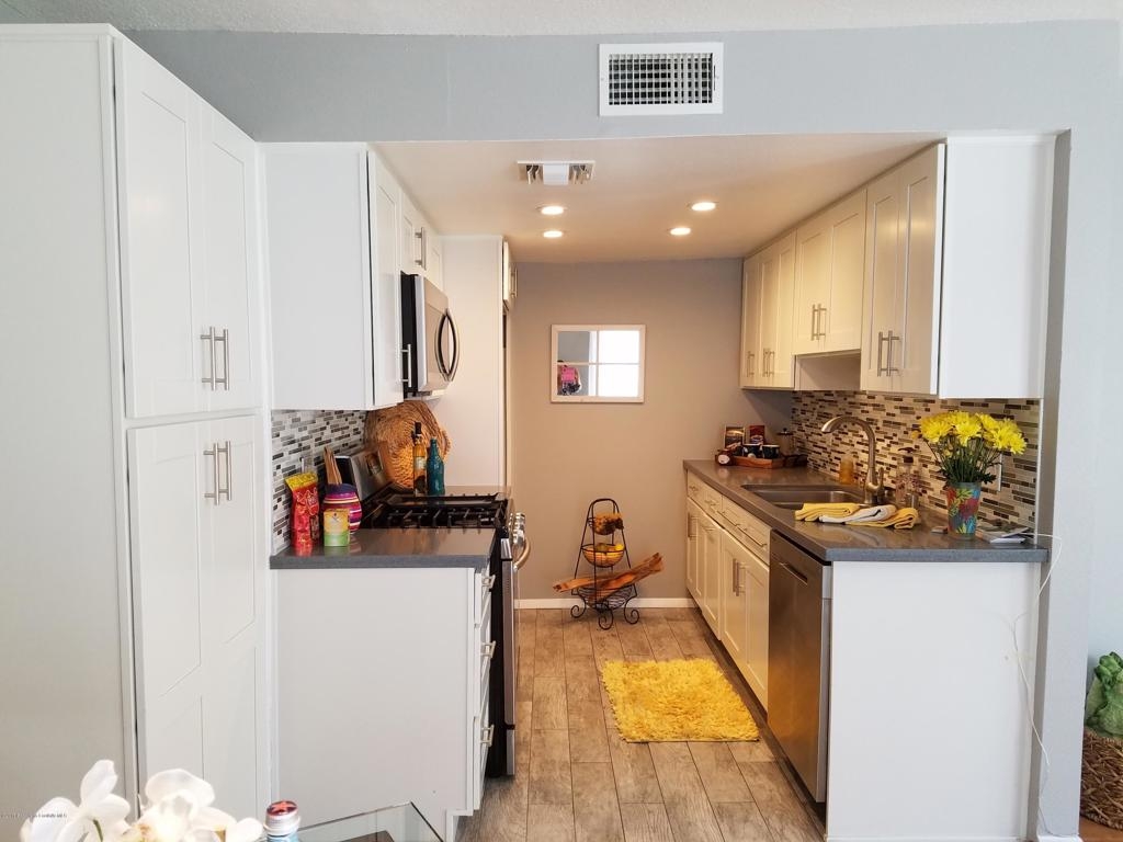 Just bring your bags and move right in! This is a wonderful 2-story condo located in an impeccably maintained complex. A quiet and charming tree-lined street close to PCC, Caltech and Pasadenas best restaurants is the perfect location to call home. Freshly painted with designer tones, new carpet upstairs and beautiful hardwood floors downstairs. The light and bright floorplan downstairs features a fireplace, charming patio and recessed lighting in the kitchen.The kitchen which was completely updated in 2014 with quartz countertops accented with glass-tiled backsplash, new self-closing cabinets and Samsung stainless steel appliances is the highlight of this home. Additional storage wasadded with a new pantry with pull out shelving. The formal dining area is open to thefor cool evenings the cozy patio provides alfresco dining and relaxing.Both bedrooms are upstairs and are accessible to the full bath including shower and tub. The large master bedroom offers an amble walk-in closet ideal for an elegant wardrobe and more.Additional Features: New Central Air and Heat, including new vents and registered has just been addied. Stackable laundry hookups are provided in separate downstairs closet and 2-car side-by-side parking stalls are located in the secure gated garage.
