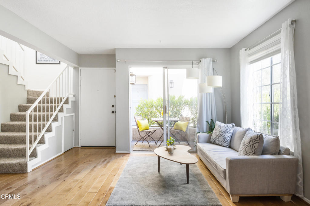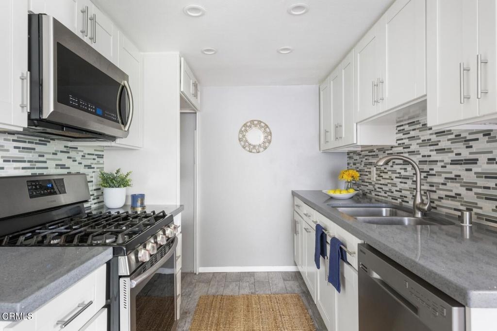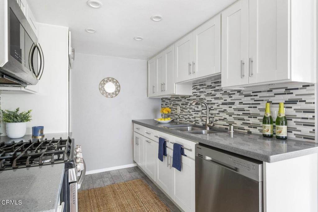 Quite possibly the cutest townhome style condo this side of the Mississippi!!! This two story end unit features an open floor plan with 2 bedrooms and 1 1/2 bathrooms. Entering through the front door, you'll immediately notice the natural light that floods the living and dining area. Enjoy dinner al fresco on the intimate patio just off the living room. The updated galley kitchen features quartz countertops, glass tiled backsplash, self closing cabinets and Samsung stainless steel appliances. Upstairs features two large bedrooms with big closets and a full bath. Stackable laundry hook ups and plenty of storage. The home also has two side by side parking spots in the gated garage.