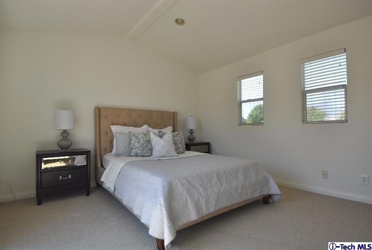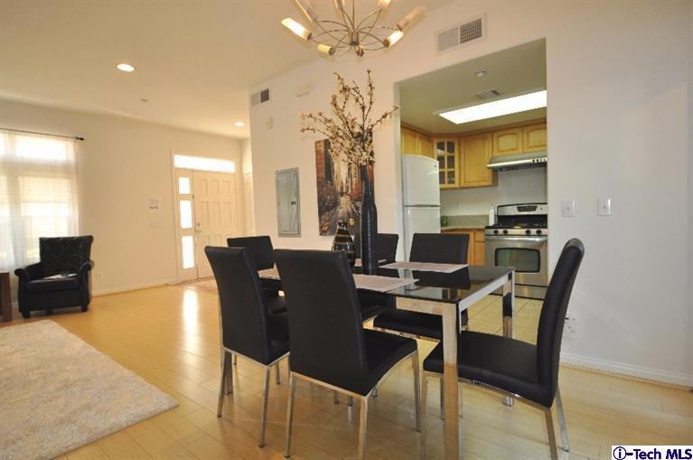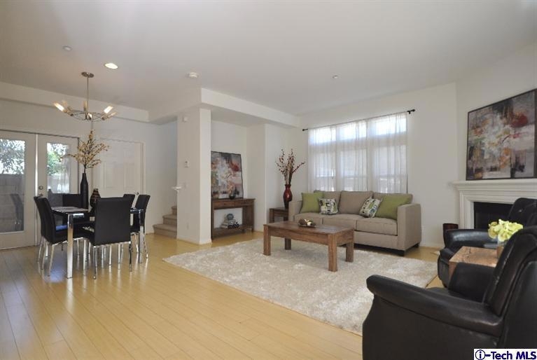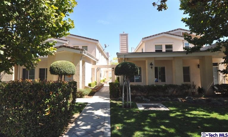 Beautiful 2006 townhouse located on a quiet street in Pasadena. There is a lovely landscaped courtyard dappled in sunlight. A tiled entry welcomes you to this stunning end unit. Living room is bright and open with high ceilings, wood floors, and a beautiful fireplace. The kitchen boasts granite counters, custom wood cabinetry, stainless appliances, and a garden window. The dining room has double doors that lead to a private patio perfect for a bistro set. There are three spacious master suites each with their own full bath. Top floor master suite features soaring ceilings, mountain views, and an enormous rooftop balcony. The attached private garage has room for storage. Unit is freshly painted and move-in ready. Low HOA. This is the perfect townhouse for a discerning buyer or investor with 3 master suites and low HOA.