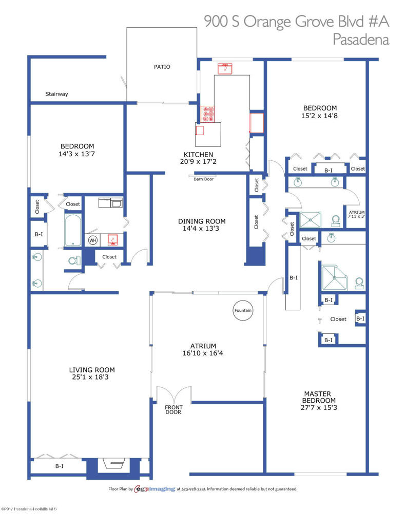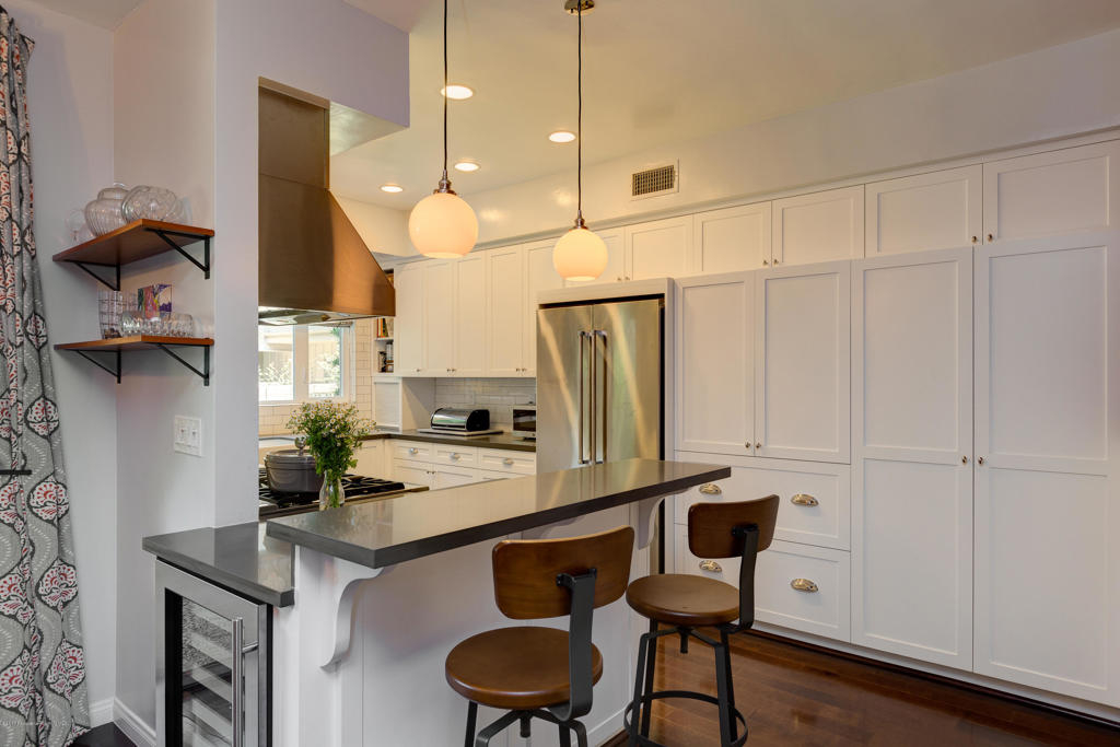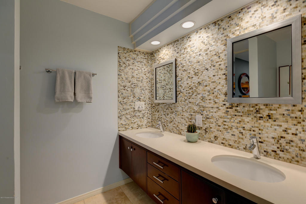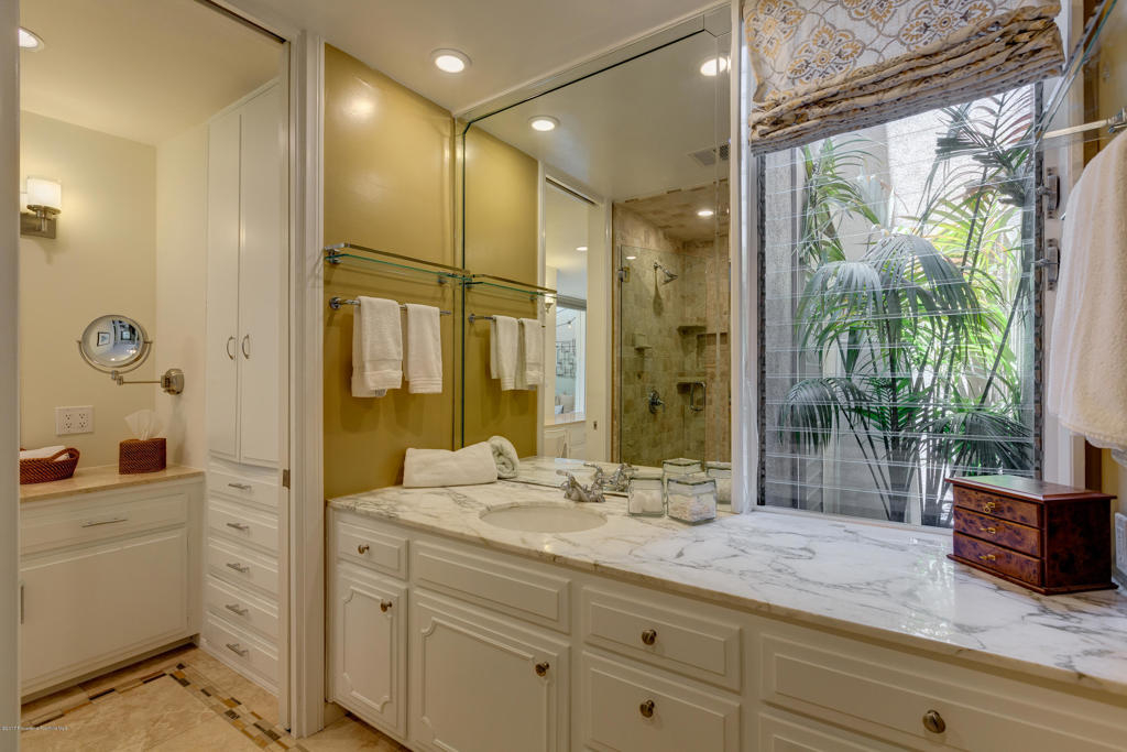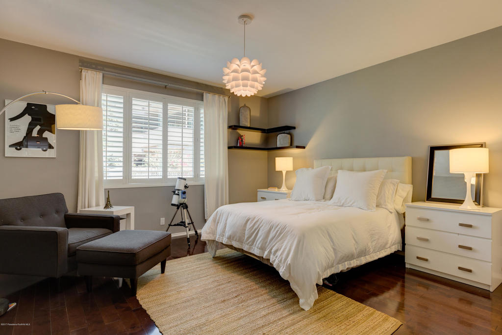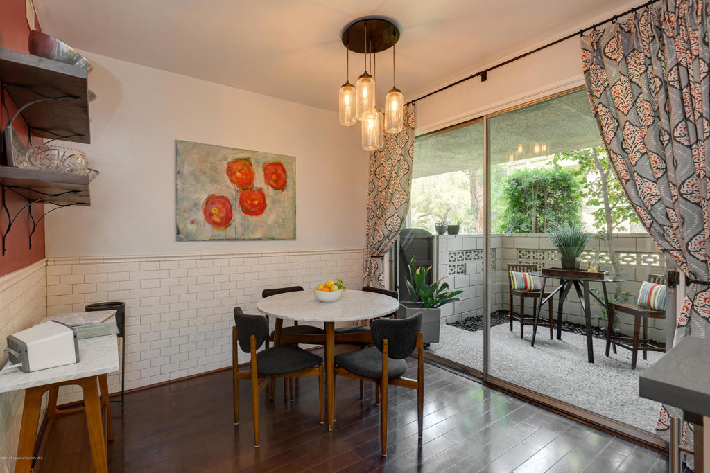 This stunning, mid-century condo boasts three bedrooms, three bathrooms, a double-door entry and an outdoor patio. With a water feature and open-air feel, the atrium off the entry is an entertainers dream and has access to the master suite, living room and dining room. In the spacious living room with a gas fireplace, windows fill the room with sunlight. Off the hallway is a bedroom suite with double sinks and a built-in wardrobe. The dining room is central to the home and features a spectacular barn door. The eat-in kitchen includes a Thermador Professional six-burner stove, Quartz countertops, a wine refrigerator, a farmhouse sink, loads of storage and a breakfast bar. A gorgeous master suite completes the unit with a spacious walk in closet, marble shower and vanityarea, and separate bath featuring marble countertops and shower. With its close proximity to wonderful Old Town Pasadena's restaurants, shopping, and fitness studios, and a short drive to Downtown Los Angeles, this beautiful home is situated in the ideal location.