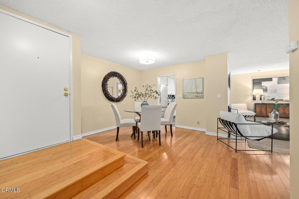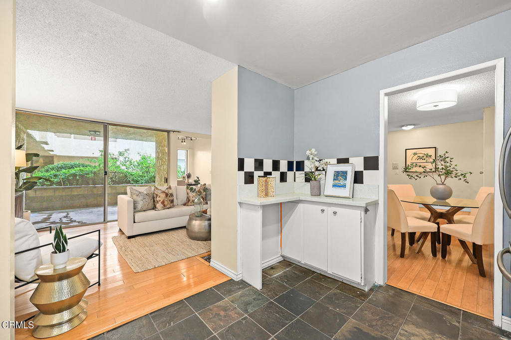 Featured is a well maintained and updated condo located conveniently to PCC, CalTech, shops, cafes and the metro line. Walk into the spacious floorpan with separate dining room and large living room with sliding glass door leading to your private patio. There is a reading nook off of the living room, perfect for a desk. The kitchen is bright and open with white cabinets. There is a full hall bath and bedroom down the hallway. The primary bedroom suite is large and airy. An ensuite with plenty of closet space is available. Wood flooring throughout condo. Parking is gated subterranean and is tandem for two cars. There are no shared walls to any other unit except for upstairs!