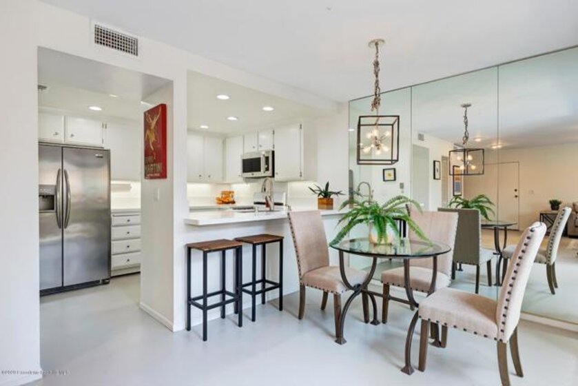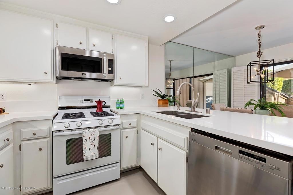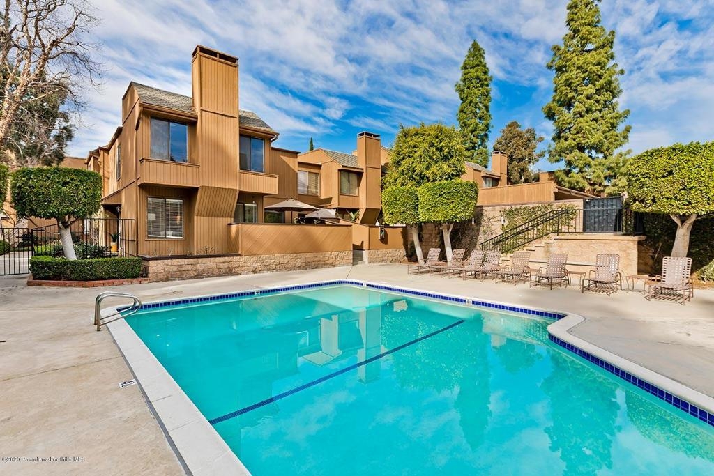 Newly renovated south facing corner townhome with private 2-car garage is in one of the best locations in this desirable community of meandering walkways, lush landscaping and open spaces. Remodeled kitchen that opens to the dining room has Verona quartz counters with breakfast bar, stainless steel appliances, recessed and under-cabinet lighting and generous storage space. The open-concept living room with gas fireplace combines the dining area with the spacious patio creating versatility for all your entertaining. Completing the downstairs are a side-by-side laundry and a half-bath discretely tucked away from the living areas. Two spacious bedrooms with two updated full baths complete the upstairs. The lavish master bedroom with vaulted ceilings, mountain views and multiple closets, including a walk-in, has an en suite bath with dual vanities, refinished bathtub and new fixtures. This gated community is conveniently located near Old Town Pasadena, Huntington Hospital, Metro Gold Line, I-110 Freeway and South Pasadena. Other features include newer central heating/air, new flooring and one of only two residences with direct pool and spa access from your private patio that makes this a fantastically rare opportunity.
