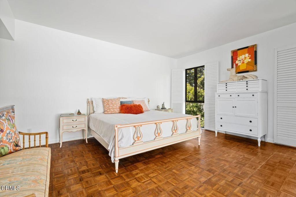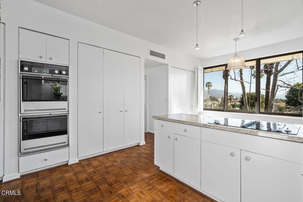 Elegant and sophisticated 411 Gordon Terrace is on a tranquil street just off South Orange Grove Boulevard, located on the top floor of a complex with only six residences. A stunning contemporary retreat with an abundance of light and captivating views of the San Gabriel Mountains, city lights, and lush tree-top greenery. The expansive terrace with large retractable awnings extends the living space for excellent entertaining or quiet repose. The formal entry opens to a center hall floor plan. There are hardwood floors throughout the residence, 9ft high ceilings, a handsome fireplace, and floor-to-ceiling sliding glass doors open to the terrace from the spacious living room, dining room, and primary bedroom suite. The kitchen has generous cabinet storage, granite countertops, a peninsula with the cooktop, built-in double ovens, and a Sub Zero refrigerator. Enjoy sweeping views of the mountains and City from the breakfast area. The primary bedroom is a quiet retreat and features vistas of greenery, hardwood floors, a walk-in closet, and an ensuite bathroom. The guest bedroom has excellent closet storage and hardwood floors--the second bathroom is off the hallway. 411 Gordon Terrace is an open-air security complex with only two units per floor. There is secure parking with two side-by-side parking spaces and additional storage. Amenities include a pool and spa, a newer elevator, and newer roof.