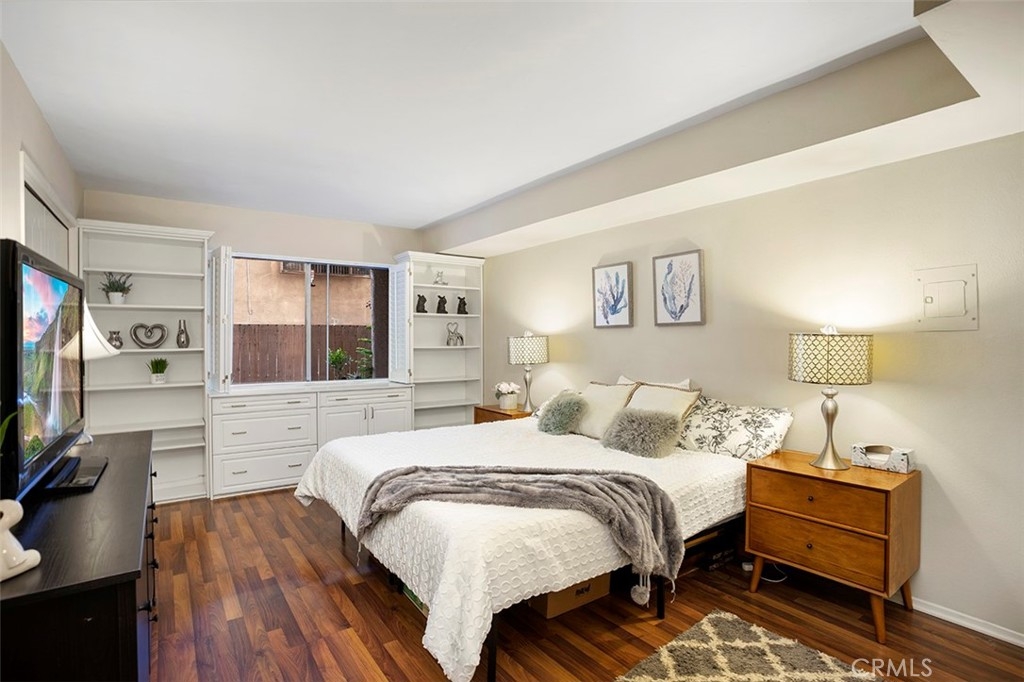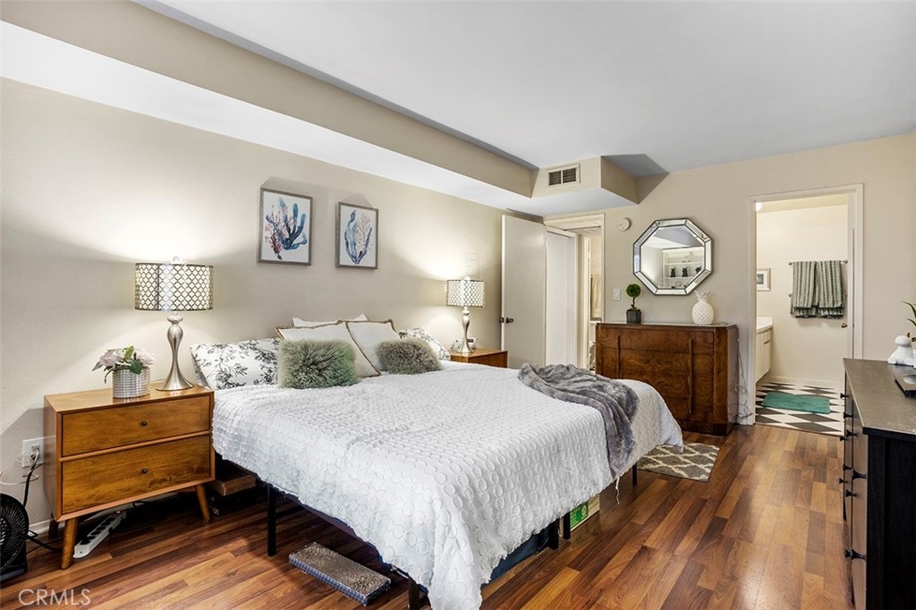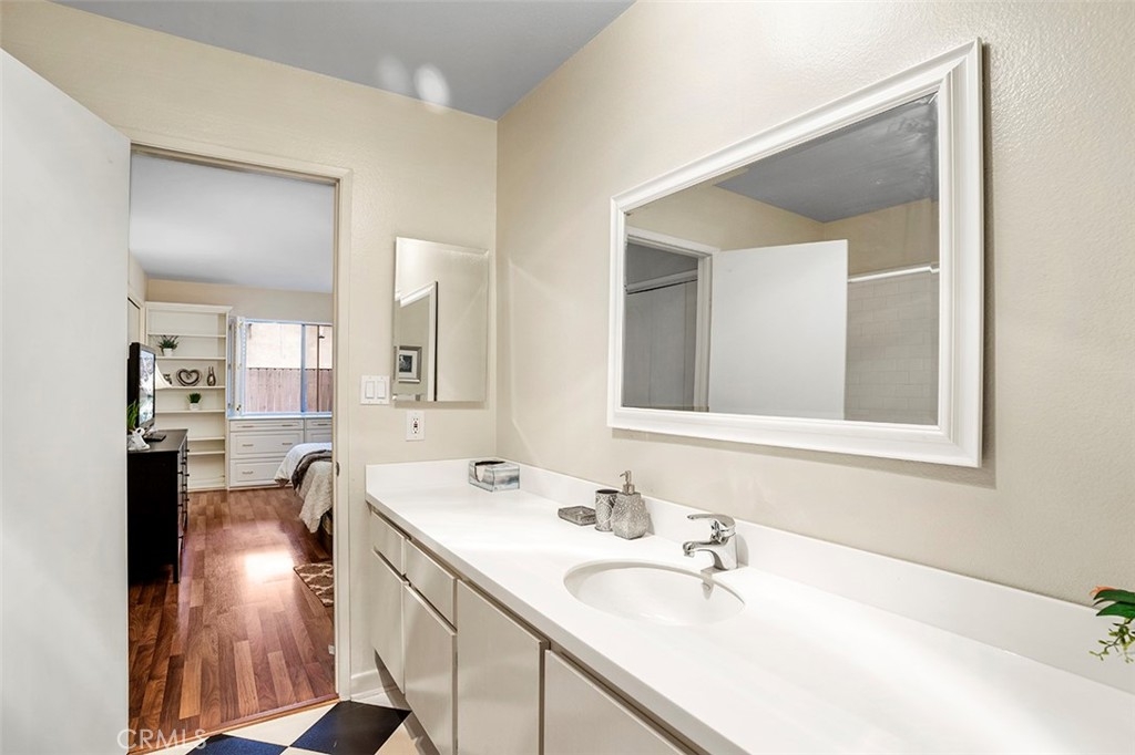 Welcome to this lovely cozy 1 bed, 2 bath, 910 sqft condo located in a very desirable part of Pasadena! The open floor plan extends to a spacious private patio perfect for entertaining guests. The property features beautiful hard surfacing floors in main rooms and bedrooms and checkered floors in the wet area and the entrance. The living room features recess lights, large windows, and sliding doors. The kitchen is built with white Corian countertops and stylish cabinets. Both bathrooms are spacious and built with white Corian countertops. The bedroom has built-in cabinets, bookshelves and plantation shutters. The sliding door comes with a pet-door, perfect for dog or cat owners. The building is secured with lobby and elevator access. HOA includes earthquake insurance, water, trash and assigned parking space within a gated parking garage. Close proximity to all shops on S. Lake Ave, Old Pasadena, Cal Tech, PCC and the Metro Gold Line!