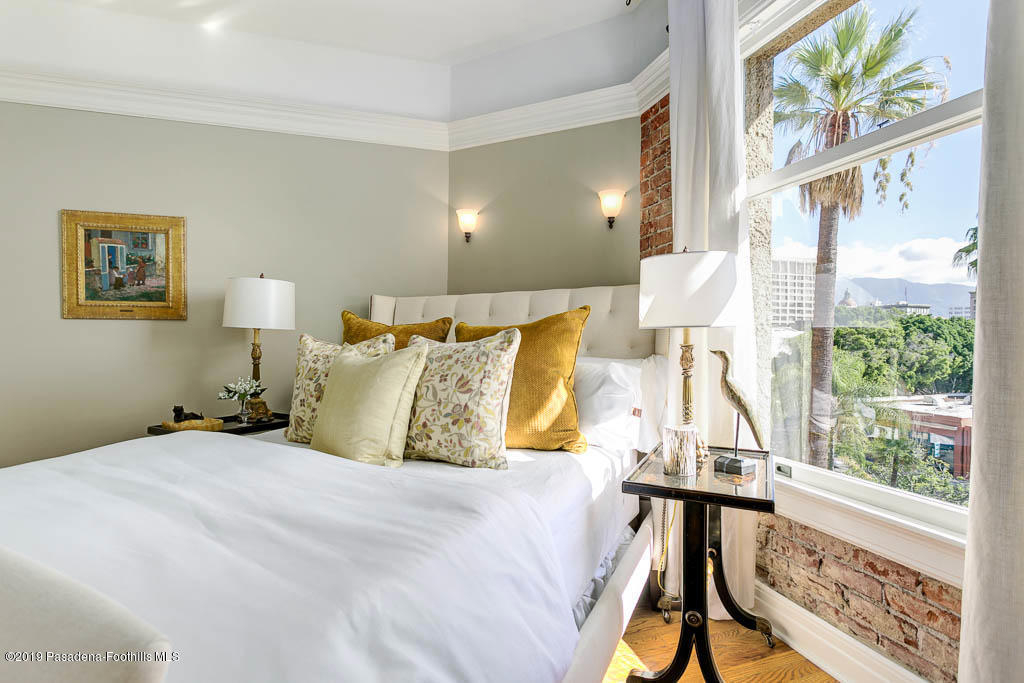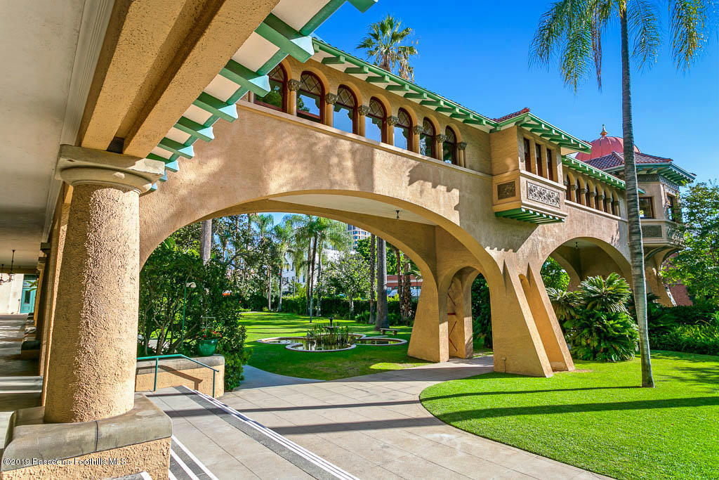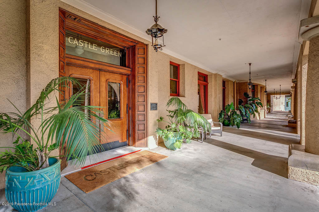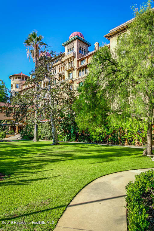 Situated in the center of Old Town Pasadena, Castle Green is an iconic and architecturally significant landmark originally built in 1898 that is included on the National Register of Historic Places and Mills Act status.Beautifully restored to it's original grandeur, behind the gates a doorman welcomes you into the lobby w/Moorish, Craftsman & Victorian influenced public rooms, wide marble staircase & wrought iron elevator. The Executive Studio Unit has been completely updated w/ high-end modern conveniences & architectural integrity throughout. Solid hardwood & stone tile floors, custom bulit-in bookcases and cabinetry, crown molding, floor to ceiling windows w/ motorized curtains that provide mountain views beyond the expansive grounds & Koi pond below. An open Living Space w/ decorative fireplace ,dining area and chef's kitchen that includes both Viking/Fisher & Paykel appliances. A spacious Full Bathroom w/ shower over tub, custom stone tile and walk-in closet allows for additional storage. HOA includes electricity, gas, water, in-building laundry machines, 24 hr elevator service and use of public rooms, extensive grounds & building events. Walkable to all the best Old Town Pasadena has to offer.A truly 'turn key' unit that is ready to impress!
