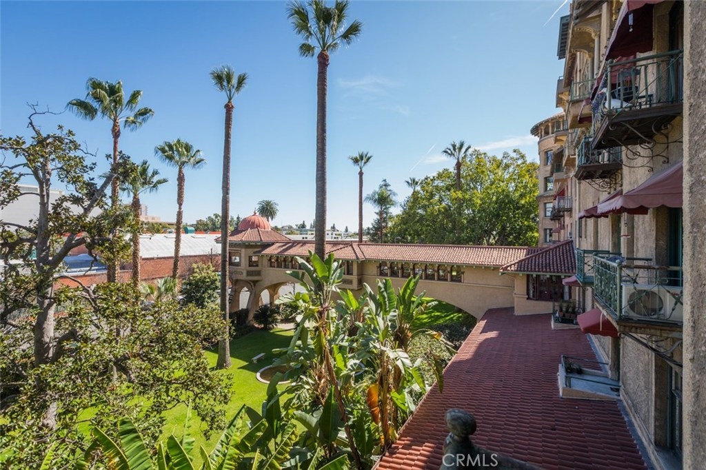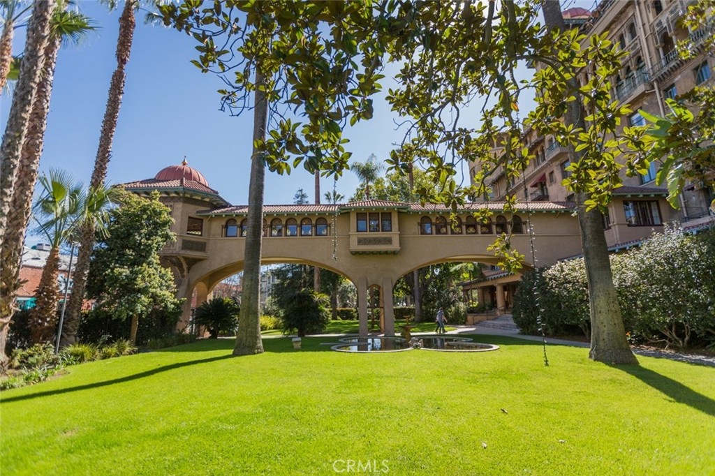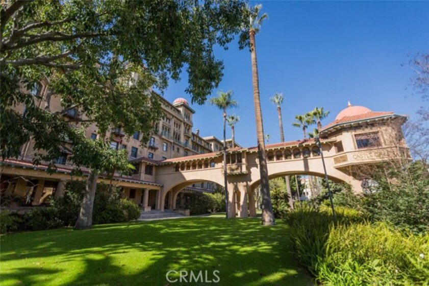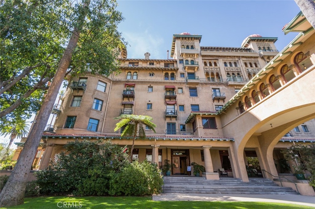 Situated in the heart of Old Pasadena, Castle Green is one of Pasadena’s most unique building designed by architect Frederick I. Roehrig and built by Col. George G. Green. The castle Green is included in National Register of Historic Places and Mills Act status. Inside the lobby you are greeted and welcomed by the doorman and instantly amazed by the luxurious and exemplary Moorish, Craftsman & Victorian influenced public rooms, wide marble staircase & wrought iron elevator. This meticulously updated and rare unit with two balconies offers best views to the hotel grounds, palm trees and Koi pond. The luxurious bedroom includes fireplace, master bathroom and private balcony, while the living room offers breathtaking views of hotel park, custom cabinetry, fireplace balcony with french doors and stone tile floors. With floor to ceiling windows the completely updated kitchen offers ample of light and space to cook your favorite dishes while enjoying dramatic mountain views. HOA includes electricity, gas, water, in-building laundry machines, 24h concierge service, security and use of public rooms, extensive grounds & building events.