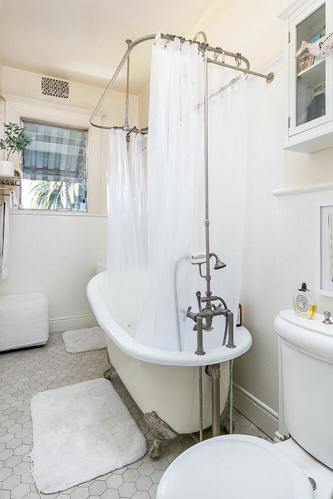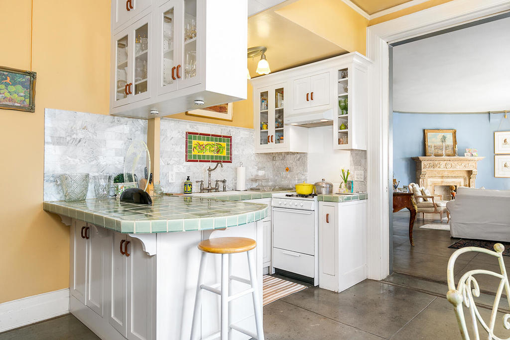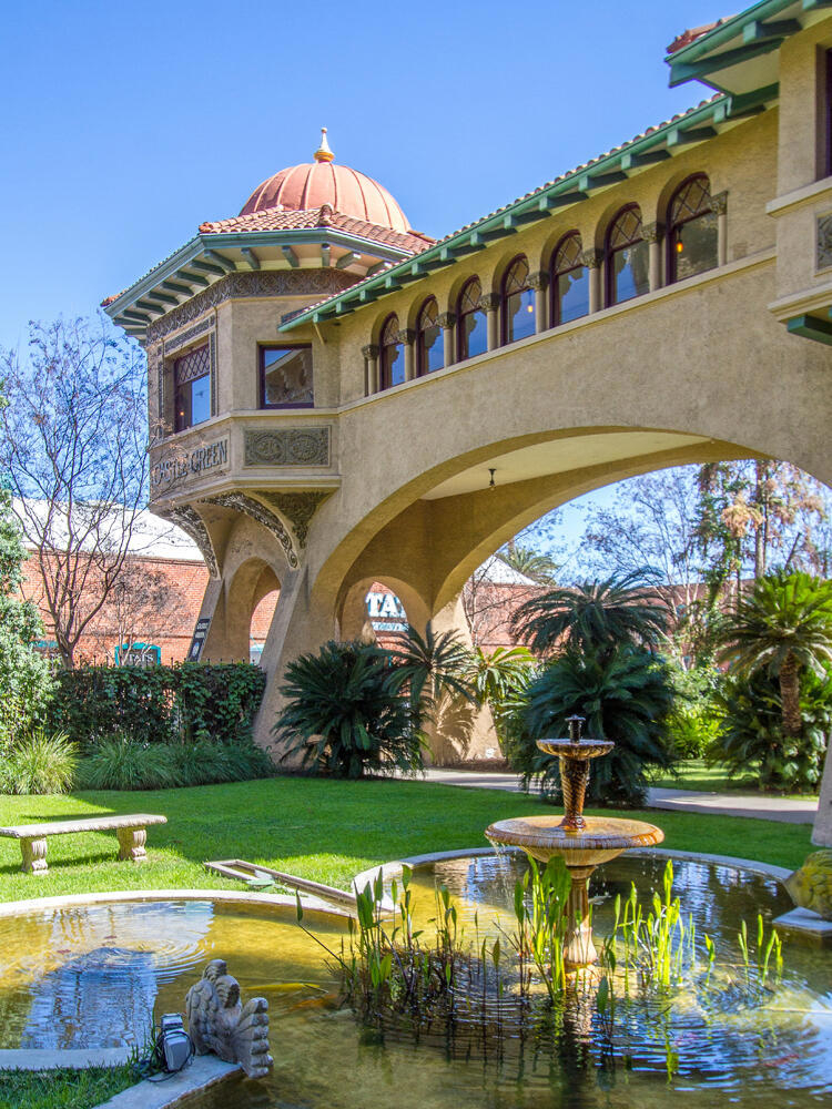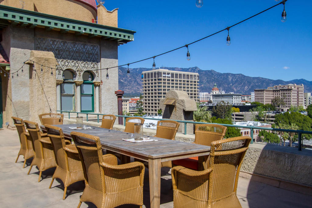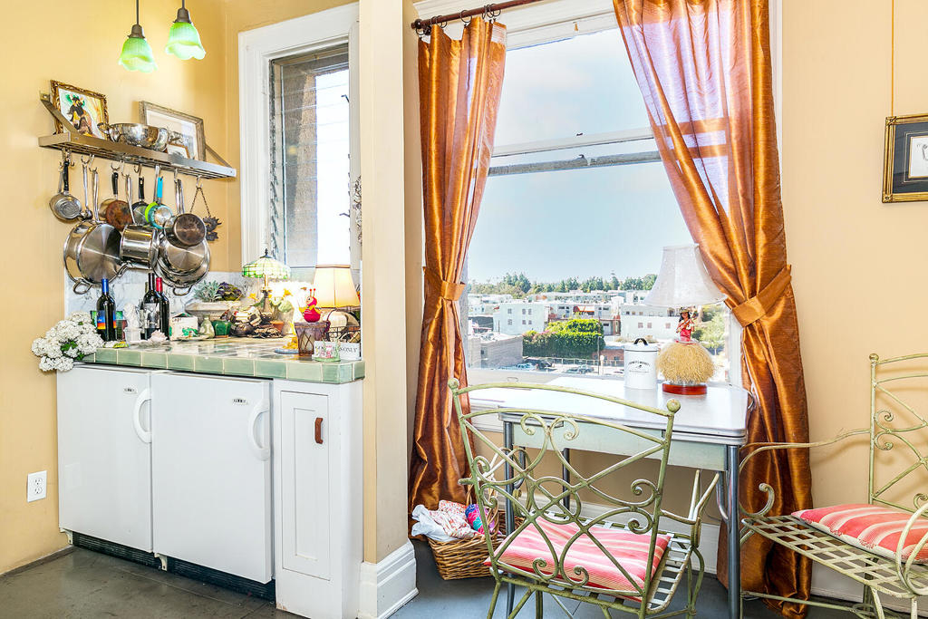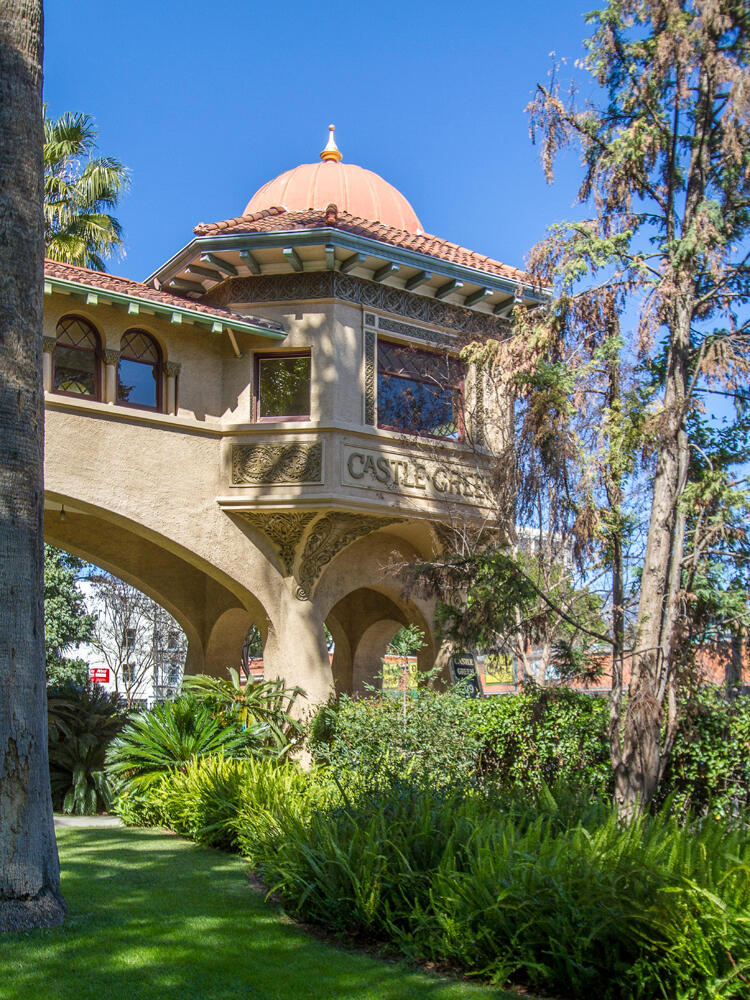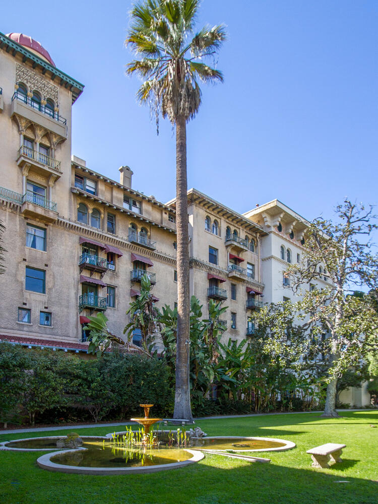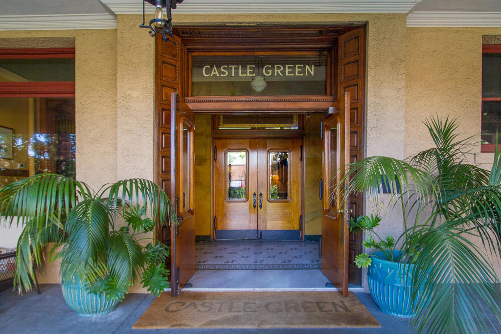 Have you ever wondered what a vacation apartment in the late 19th century in Pasadena would have been like? Welcome to #501 at the Castle Green, Pasadena's iconic and architecturally unique landmark, built in 1898. This 5th floor tower, 1 bedroom unit is filled with history, atmosphere, charm, and character that takes you back in time. The stunning round living room features amazing original curved glass windows and a gorgeous pocket door. The kitchen has been opened up to the dining area making it perfect for entertaining. There's no lack of storage space with the 3 large closets. There are not 1, but 3 entrances to this unit; 1 to the living room (for your guests) 1 to the dining room (for your caterer) and 1 to the bedroom (for your lover?). Bringing this unit into the 21st century to keep you comfortable all year long, there are 2 AC units and 2 ceiling fans.