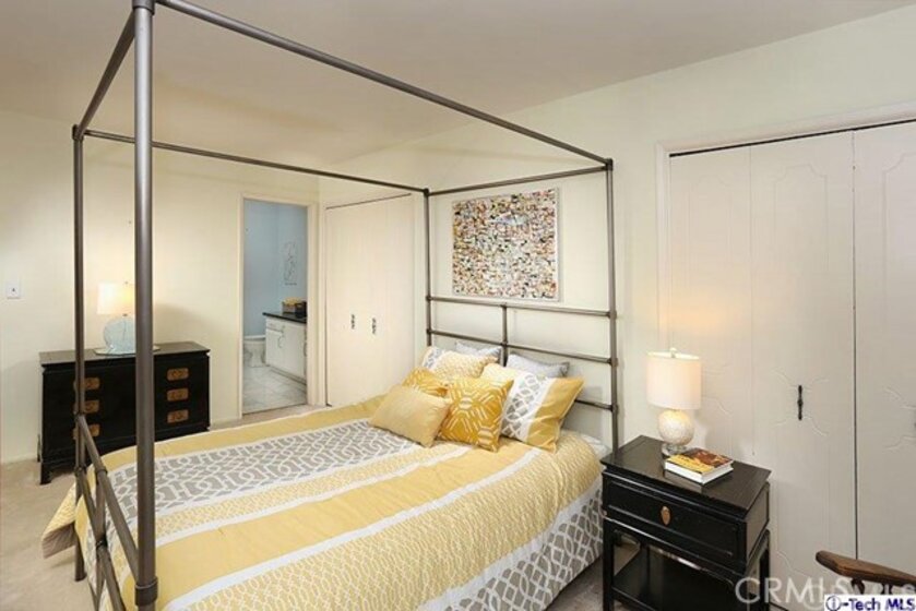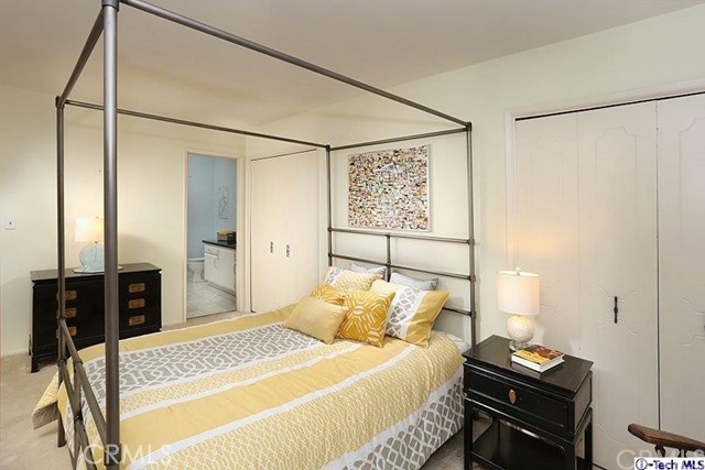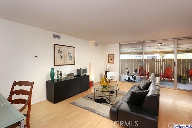 Location! Location! Location! This wonderful mid-century style condo, in the prestigious Castlegate HOA, is located adjacent to Millionaires Row on South Orange Grove Blvd. Join the annual New Year's Eve party as the Rose Parade floats line up just steps from your front door. Unit 104 welcomes you through a double door entry into an open floor plan, that overlooks an over-sized balcony perfect for entertaining or dining al fresco. This home offers a large master suite with ample closet space, and a private remodeled bath. A second guest 3/4 baths is just off the living room. While the building has two laundry facilities, there is also the possibility to add an in unit washer and dryer, with HOA approval. And of course, this home has central air to keep you cool all summer long! The building has recently undergone several upgrades such as a new elevator, fresh paint and new carpet in the common areas, as well as the balconies of each unit recently renovated. The pool and spa have also been resurfaced. The HOA is $325 per month.