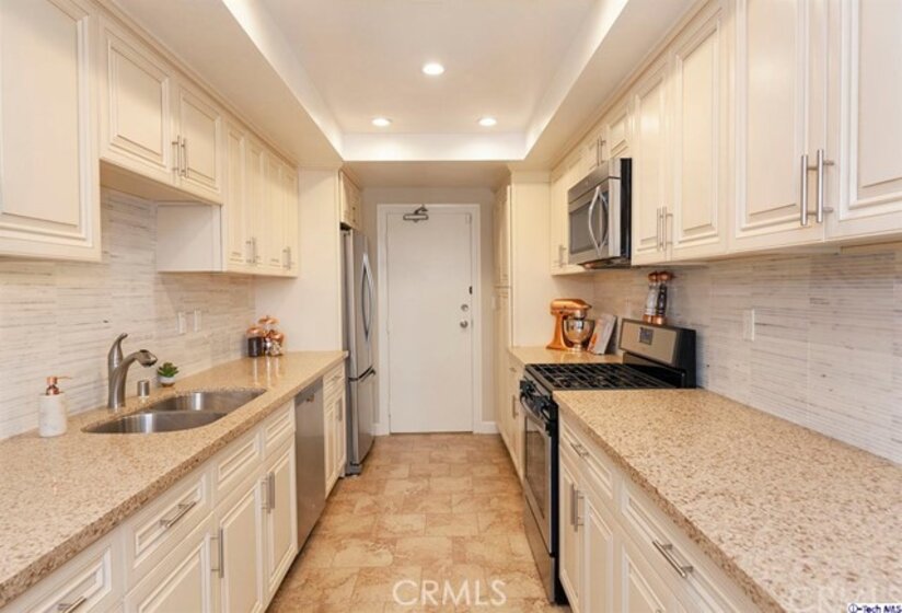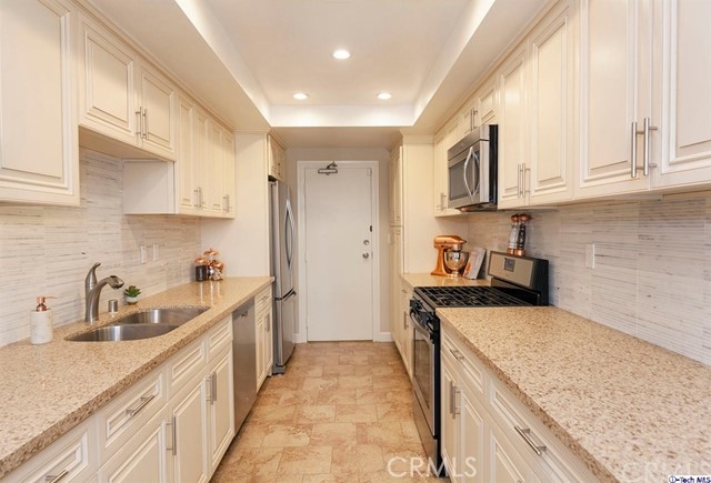 Luxury 1 BD/2 BA condo, adjacent to Millionaires Row. Meticulously remodeled with the highest quality materials throughout. Elegant Double-door entry that opens to a large living area with wood floors, LED recessed lights, and Floor-to-Ceiling windows. The open floor-plan and access to oversized 400+ SqFt patio give this condo an inviting and modern feel, perfect for California Living! The Gourmet Kitchen is fully updated with custom cabinets, quartz countertops, imported Italian stone & stainless appliances. Powder room has a custom vanity, detailed tile work and in-unit laundry with built-in closets. Master bedroom is spacious and features an updated en-suite bath, and extra large His & Hers double closets. The Prestigious & immaculately maintained Castlegate complex offers remodeled common areas & elevators, heated pool, BBQ area, club room, private storages, guest parking & secured access. Walking distance to Old Town Colorado shops, and front row seats to the world famous Rose Parade, this is a rare opportunity to live in one of Pasadena's most coveted neighborhoods!