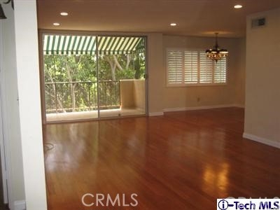 Beautiful, spacious top floor corner unit. Many upgrades, including hardwood floors, open kitchen, recessed lights & more. Double door entry leads to a large mirrored foyer which opens to the light, bright living room and formal dining room. Large patio with treetop views and privacy. Kitchen has built-ins and breakfast area. The extra large master bedroom has 3 closets, one of which is a large walk-in closet. Den can be 3rd bedroom. 2nd bedroom has mirrored wall. Enjoy sitting out on the large patio. This building has a beautiful swimming pool and rec room. Walking distance to Orange Grove Ave., Old Town, Huntington Hospital and shopping. Great location!
