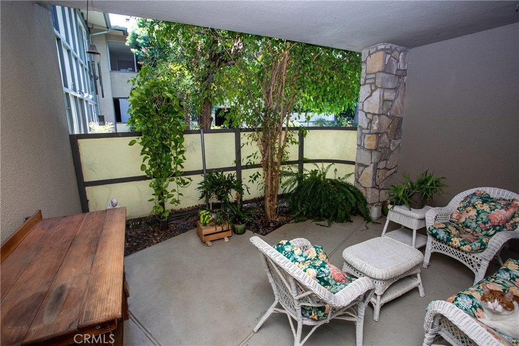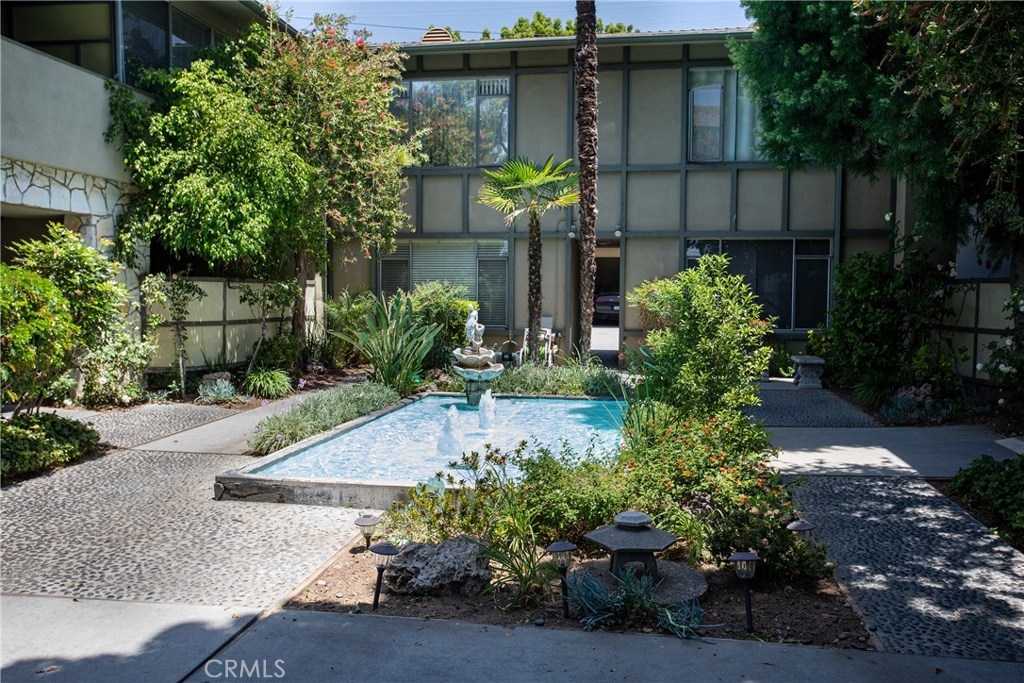 This Hastings Ranch Pasadena condo is exceptionally well located. One block from Whole Foods, Trader Joe's, Ralphs, LA Fitness, and many more shopping and dining options. Enjoy the soothing sounds of a nearby fountain in this private corner unit. Located on the ground level, this 2 bedroom, 2 bathroom unit offers tasteful mid-century touches. Central heat and air. The unit includes two parking spaces. Private, enclosed patio. Kitchen and bathrooms were remodeled a few years back.