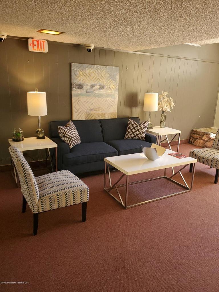 IDEAL LOCATION in Pasadena. Totally remodeled, modernized mid-century 1 bedroom, 1 bath condo. New kitchen, new bath all modernized with new laminate floors, cabinets and quartz counter tops. Stainless steel appliances. New walk in shower and lighting. Can lights in living room and kitchen. New solid wood doors throughout. New ductless split system for HVAC. Refurbished balcony overlooking landscaped courtyard. Cal Tech proximity, PCC close as well as Pasadena Playhouse District and Lake Street Business District. One car covered parking close. Common laundry adjacent to the unit. Second floor elevator is on other side of double doors. Pool w/ sundeck and BBQ area close. Parking space #35.