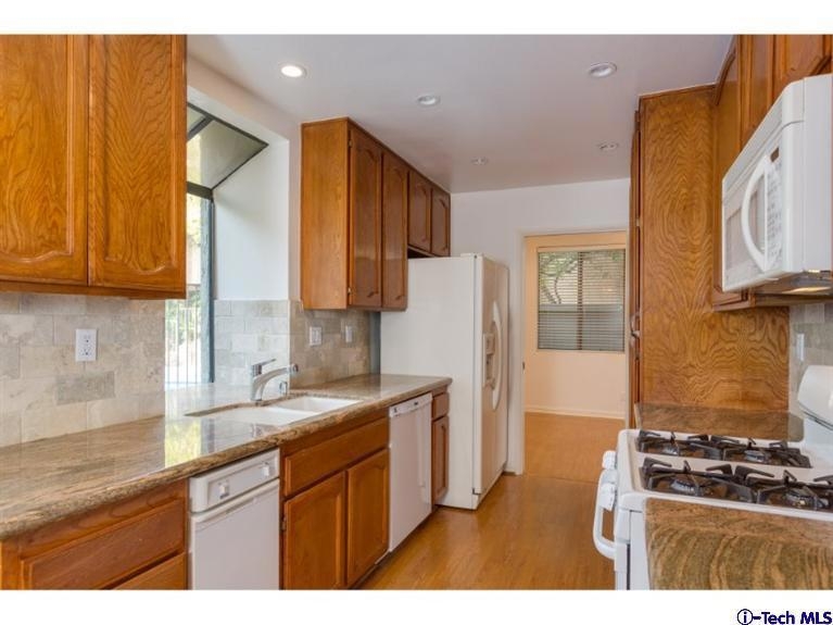 This ground floor, single level, end unit has been thoughtfully updated. The property includes three bedrooms and three baths, including the master suite with fireplace. The living room has a second fireplace and opens to one of two walled patios. The kitchen complete with granite counters and newer appliances has a breakfast area that opens to the front patio adjacent to the pool. This unit has just recently been re-piped and painted. All appliances, even the washer and dryer are included. Conveniently located near The Gold Line, Paseo Colorado, Whole Foods Market and Old Pasadena, the complex has pool, spa, fitness center and club room complete with kitchen, dining area and billiards room. The unit has two full size parking spaces and walk-in storage locker.