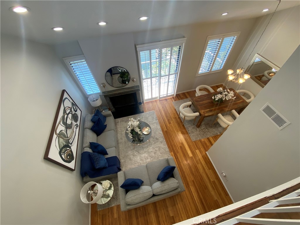 This stunning and spacious 2 bedroom & 2 ½ bath corner unit will not last! It has been updated and comes with four balconies, two gas fireplaces, beautiful mountain views from the top balcony, bright kitchen with a large bay window overlooking the walkway and laundry room with washer and dryer included. Bamboo floors in family room, dining room, entry and loft have been refinished. Master bedroom comes with fireplace, multiple closets, and double vanity with separate bath and shower enclosure. Second bedroom has its own private bathroom. Upstairs loft can be used as an office or spare bedroom. Walking distance to shopping, dining, El Paseo, Pasadena Convention Center and centrally located between Old Town and the Playhouse District. Comes with two designated side by side garage parking spaces and separate gated guest parking with keypad. HOA includes water, trash and earthquake insurance and amenities include clubhouse, kitchen, billiard table, exercise room, pool/spa and more! HOA does have rental limitations and buyers to verify all information.