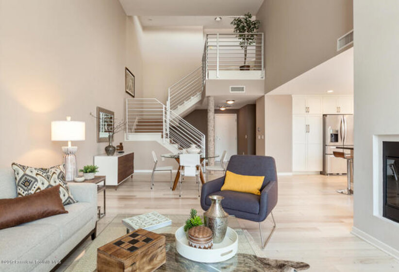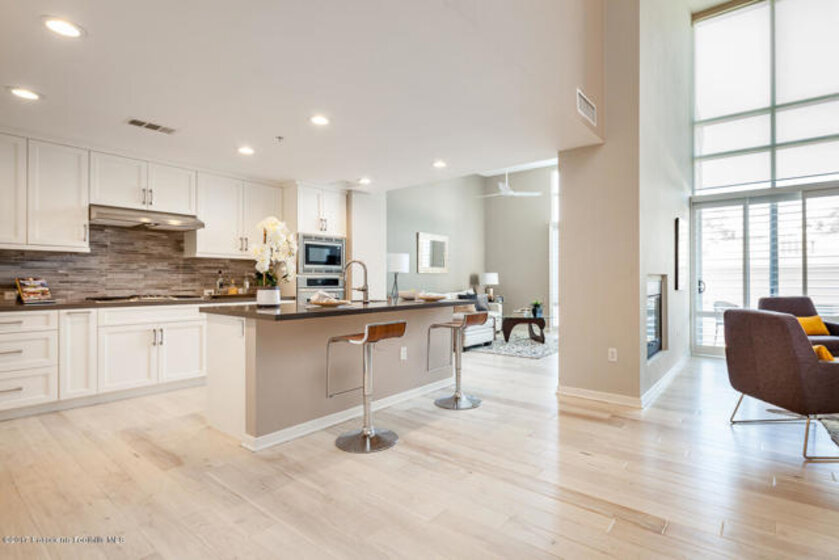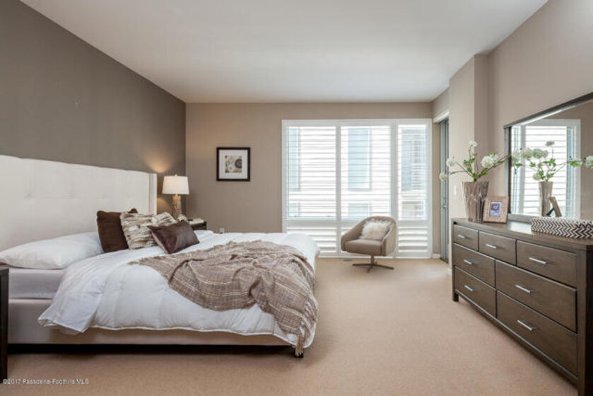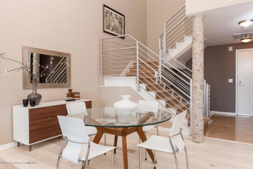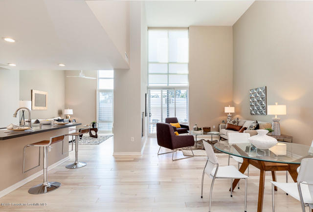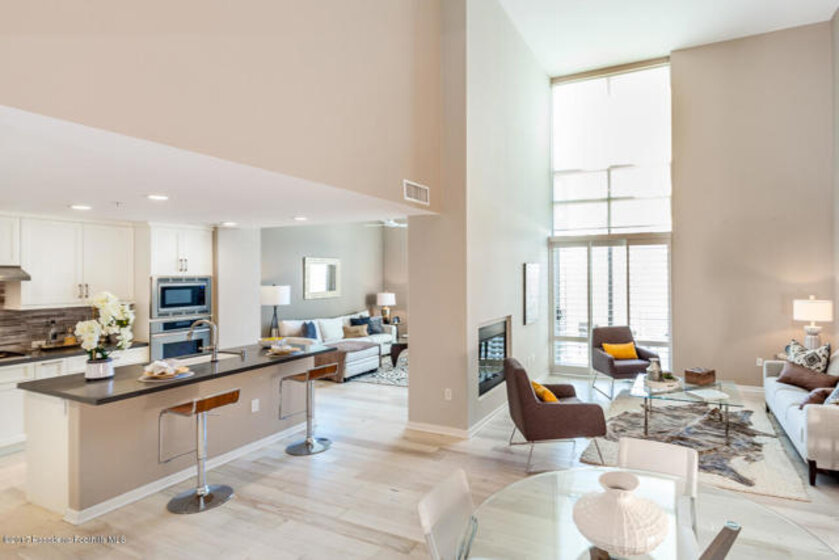 Centrally located in Old Town Pasadena steps from the local retailers, restaurants and conveniences. The Gold Line into DTLA and surrounding areas is easily accessible as well. The top floor Penthouse was built in2008 and has been since remodeled and upgraded. The handsome blonde hardwood floors coexist peacefully with the gentle tones on the well appointed cabinets, custom counters and tile work. Floor to ceilingwindows on the main floor illuminate with natural light the expansive room and raised ceilings. Extending the space of the main entertaining area is a balcony that has a vista to the west and perfect for morningbrunch and evening cocktails. Above the main floor is a loft suitable for a reading room or fitness center. The Master retreat below is copious and adorned with all the necessary amenities. A guest suite, laundry room,and office space complete the downstairs living area.