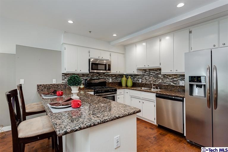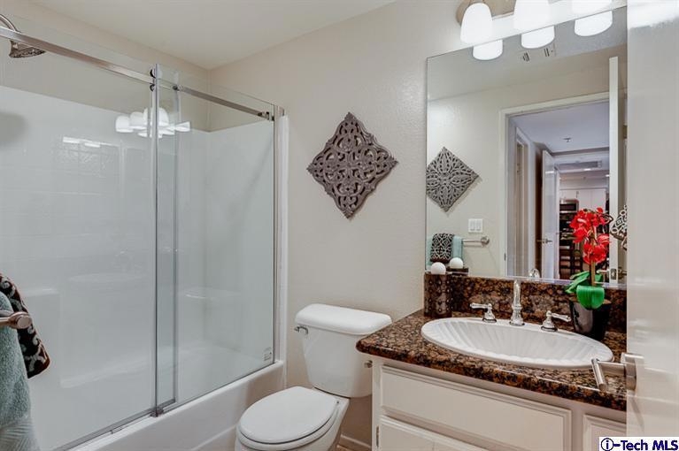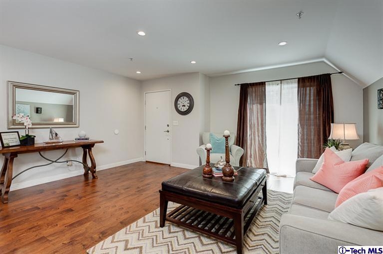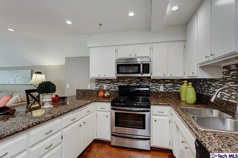 Delightful two bedroom two bathroom condo with ideal location adjacent to Paseo, Old Town Pasadena shopping, dining & more. This first floor unit features an open floorplan with the kitchen flowing into a dining area and living room. Updated kitchen features tile backsplash, stainless steel appliances, granite counter-tops, recessed lighting, breakfast bar & plenty of storage. Master bedroom features walk in closet, ceiling fan & carpet. Master bathroom showcases tile flooring, vanity with granite counter-top & recessed lighting. Amenities include hardwood flooring, newer carpet in the bedrooms, storage space in the hallway & garage parking for two cars. Association amenities offer gated entry, grounds & maintenance, on-site laundry and more.