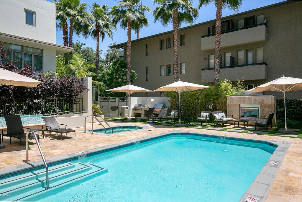 New York style living at it's finest, Granite Park Place was designed for the resort-like carefree lifestyle. Located in the heart of Pasadena's desirable South Lake Avenue district, this 2-bedroom, 3-bathroom corner end-unit residence is located on the first floor and offers an open-concept floor plan with a large living room, stone fireplace and access to the private patio and gardens. The master suite has a large walk-in closet, with built-in cupboards and a master bath with dual sinks, an over-sized shower and a soaking tub. The second bedroom suite also features a large walk-in closet. Top of the line interior amenities include stainless Viking Professional Series appliances, pearl quartz countertops, solid wood cabinets, custom wide-plank hardwood flooring, and marble baths with Kohler fixtures. Private patio space measures approx 637 feet. Granite Park Place offers a plethora of amenities and services to include the convenience of concierge and valet parking services, a fitness center, pool and spa, outdoor fireplace and poolside barbecue. Enjoy luxury living at its best!