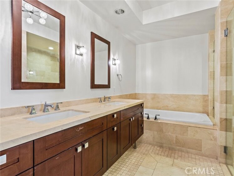 Welcome to luxury living in central Pasadena, located half a block east of Lake Ave, between Del Mar and California, on the second floor with South and West-facing views. This corner residence offers a generous amount of natural light in every room. This unit has a gracious, large floor plan with an open living room/dining area with direct access to both the south and west-facing balconies. There is also a gas-fired fireplace in the living room. The kitchen has an open pass-through countertop to the dining area. The kitchen has all high-end stainless-steel appliances, including a wine refrigerator. The master suite has a good-sized bedroom with direct access to the very large south-facing balcony. The master bathroom is very large with a long counter-top with two sinks, a separate bathtub, and a large glass-enclosed shower. The master suite walk-in closet is big enough to dance in, and that means two people. The 2nd bedroom suite is large enough to fit any size bed. It also has approximately 15 feet of custom-built cabinet space/countertop space with two levels of shelving above. There is also a walk-in closet in this suite. The guest 1/2 bathroom is off the hallway and is not small at all (I have used it with my wheelchair myself). This unit and the entire complex are very handicap-friendly. There are two designated side-by-side parking spaces in the subterranean garage with easy handicap access to the elevator. There is also a designated walk-in storage locker in the garage. Common area amenities include a swimming pool and jacuzzi, a very well-equipped workout room, and meeting room and lounge.