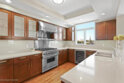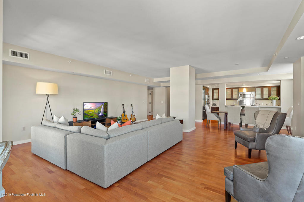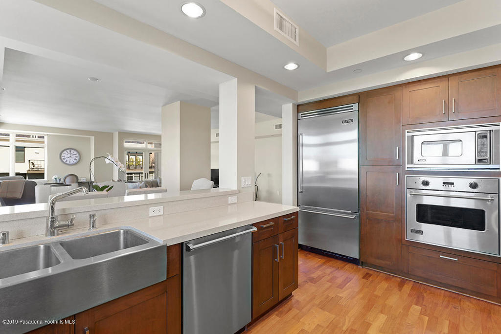 This exquisite top floor corner unit presents luxury living at its finest in Pasadena's prestigious full-service concierge building located in the desirable South Lake District. This unit has no shared walls and presents a combination of sophistication, privacy, and beautiful views of the San Gabriel Mountains. A spacious foyer welcomes you into an expansive grand living room with abundant natural light, fireplace, dining area, high ceilings, and French doors leading you to a large balcony. The chef's kitchen boasts all modern amenities with plenty of counter space, Viking appliances, a wine cooler, and views. The generously sized master bedroom features a large walk in closet and a sleek en-suite bathroom with double sinks and a separate shower and bathtub. Other features include: a second bedroom with en-suite bathroom, powder room, spacious laundry room, recessed lights, wood floors, 2 parking spots & a private storage unit close to the elevator. Additional amenities & services of the building include: 7 days a week concierge and valet parking, 24-hour security, fitness center, pool/spa, outdoor barbecues, fireplace, and elegant club house and library.