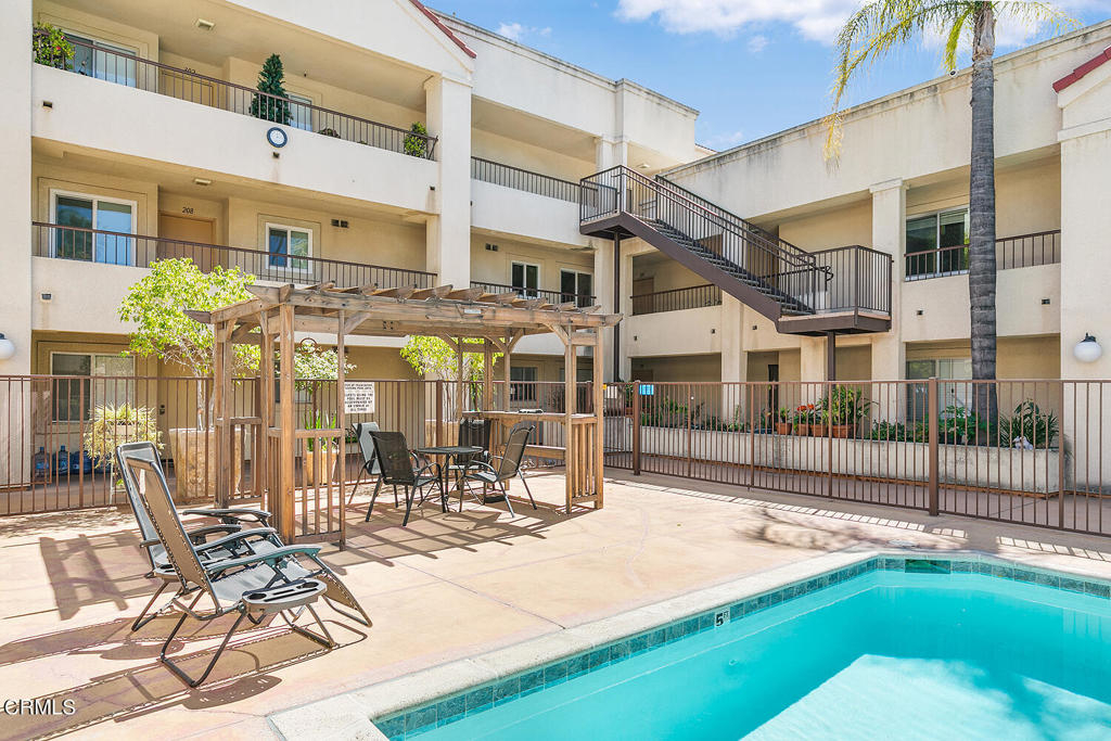 Don't miss seeing this updated, gorgeous end unit a' and what a price! Gorgeous new flooring, freshly painted, brand-new stove and brand-new dishwasher with the paperwork still inside - value, value! Light and bright throughout, this home lives much larger than it actually is. The Kitchen has patio and pool views, along with stainless steel appliances and a good amount of storage. The Dining Area is charming, located right next to the Kitchen and boasts a cozy reading bench, with storage beneath. A formal Living Room offers views off of the balcony, and plenty of room for everyone. The Primary Suite is quite spacious and the Primary Bath is a full bath. Enjoy your own outdoor space on your private balcony! Centrally located in a well known area, this home offers much. A large pool, laundry facilities a' everything you need is right here! This is a building that has a security system for entry; everything is opened with a key fob. The tree lined street is adjacent to the freeway and close to restaurants, coffee shops and stores as well as Pasadena City College, the Rose Bowl, Colorado Blvd. and Lake Avenue. Two side by side parking spaces are in a conveniently located area of the subterranean parking garage. Don't wait a' come and visit. See for yourself what move-in ready means!