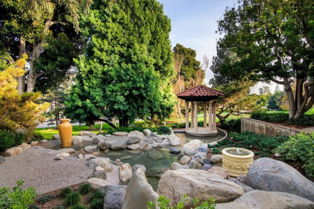 Ambassador Gardens masterpiece! Spectacular resort-style living on prestigious South Orange Grove Boulevard. Built in 2016, this lovely single level home features an open floor plan with designer finishes, a gourmet kitchen with professional appliances, a private balcony, and beautiful wainscoting. Sophisticated and elegant, this home has windows on three sides and no shared walls and natural light fills the generous rooms . The 12' high ceilings with graceful crown moldings create a grand feeling of luxury. The expansive grounds include meandering streams and waterfalls, historic Italian gardens, expansive green spaces, a refreshing pool, outdoor courtyards and sculptures. The 4 car side by side garage adds valuable storage space to this enchanting home.