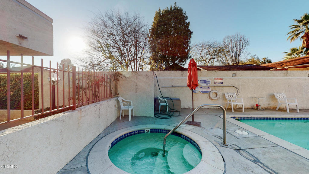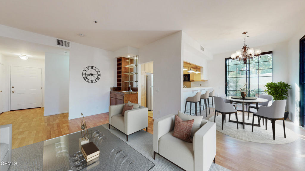 This sophisticated and bright two-bedroom, two-bathroom condo is located in a prime Pasadena neighborhood adjacent to Caltech and close to the South Lake shopping district. This unique ground level end unit is very private, has a delightful open floorplan and only one side common wall. The formal entry leads into the luxurious and airy living room with high ceilings and tall sliding glass doors, which access a huge wrap-around patio and garden area on two sides. This patio offers a serene outdoor area with charming garden views. The adjoining dining area is spacious. The kitchen offers stainless-steel appliances, loads of storage and a breakfast-bar which opens directly into the living room. Off the main entry, down the hall, is the a large bedroom with access to the patio and a three-quarter bathroom. The spacious master suite, with huge floor to ceiling windows, features a large en-suite bathroom, built-in cabinets and a huge walk-in closet. Both bedrooms also have direct access to the wonderful wrap around patio. Other notable features include an interior washer/dryer, recessed lighting throughout, two designated parking spaces and a relaxing community pool and spa. Corner unit! Gated community, heated pool, spa, elevator, and luscious courtyard. New carpet and paint. Vinyl plank flooring. This one won't last! Unit is at rear of property with elevator access from garage.