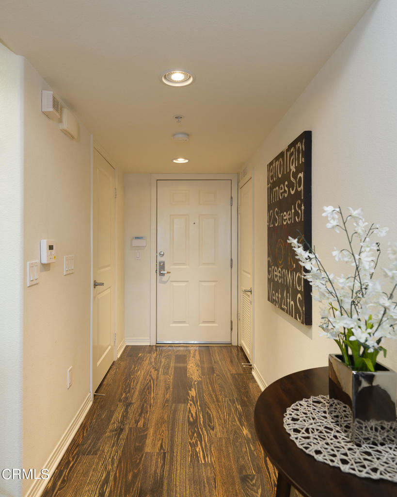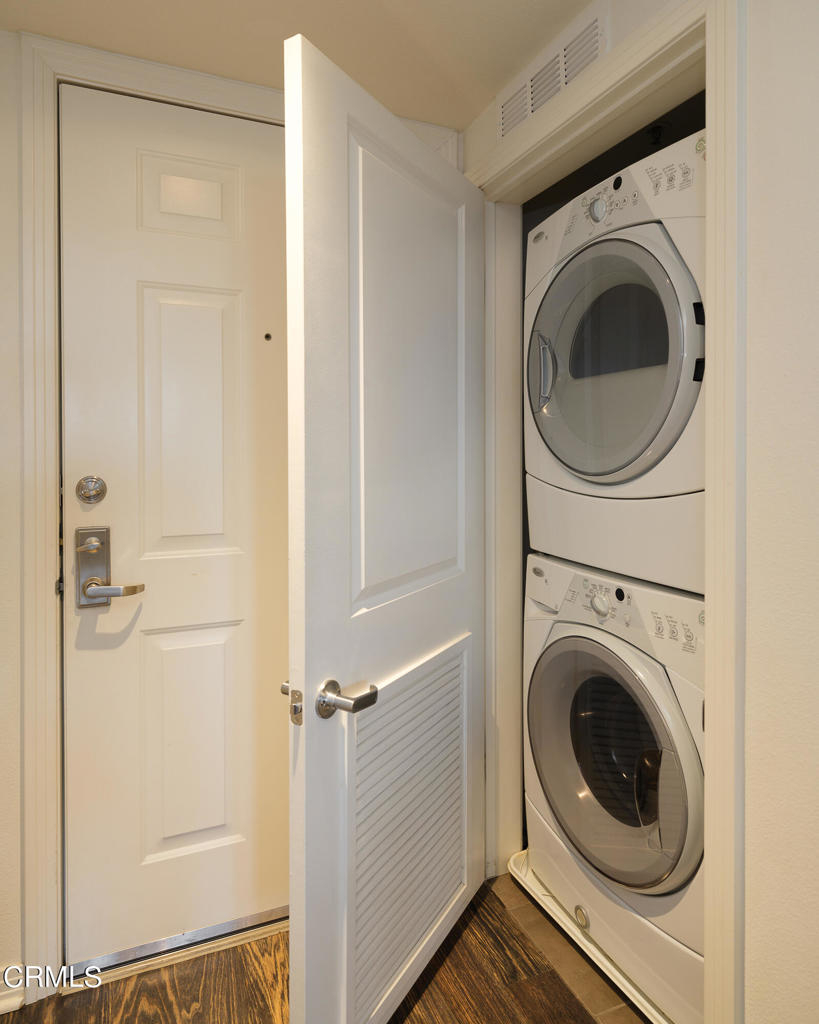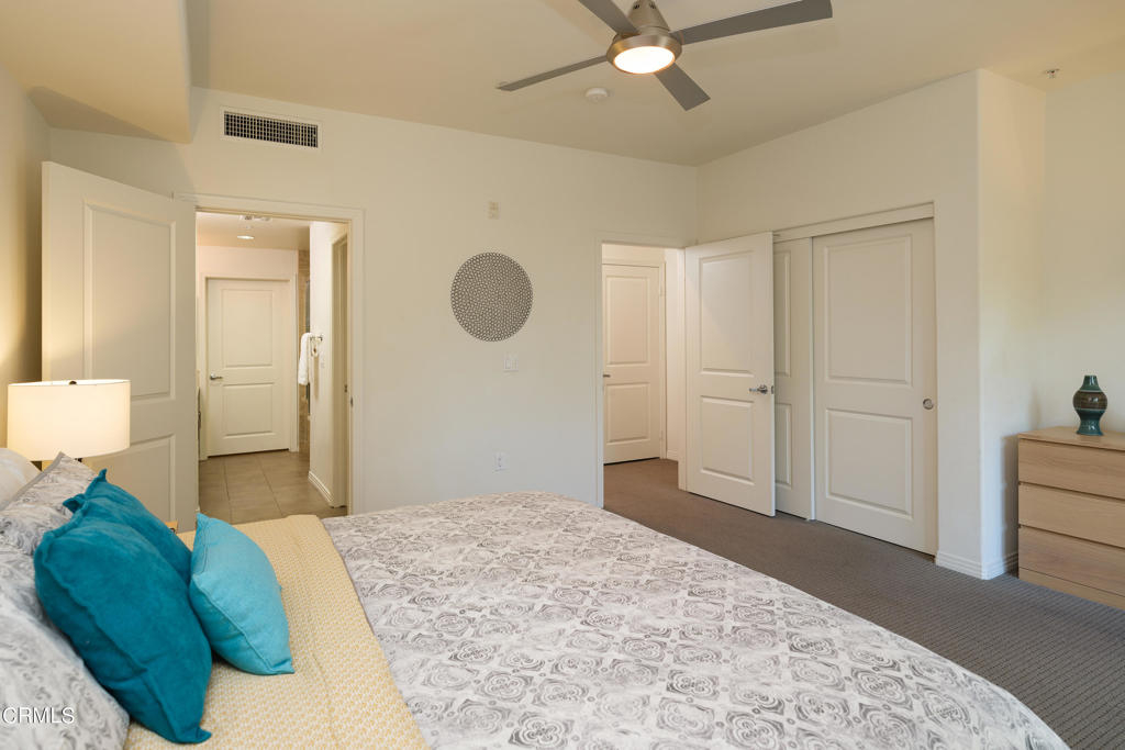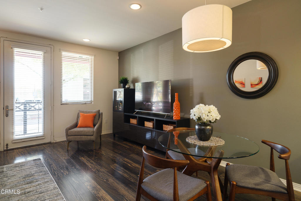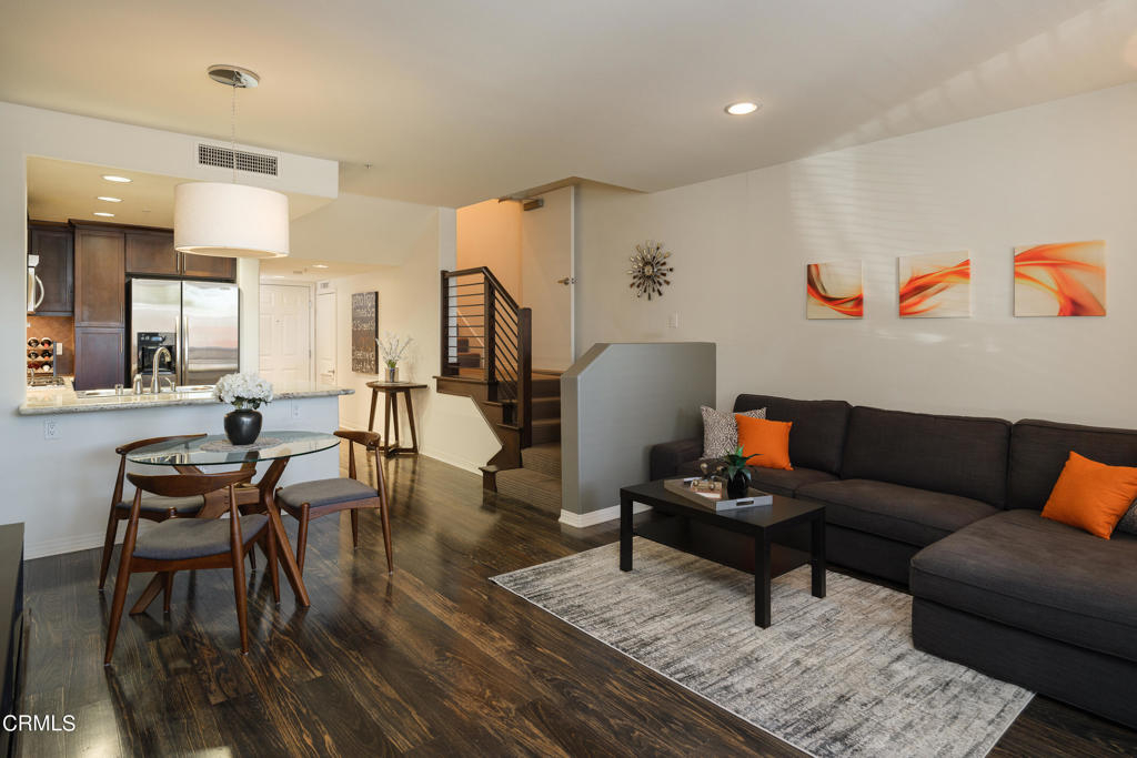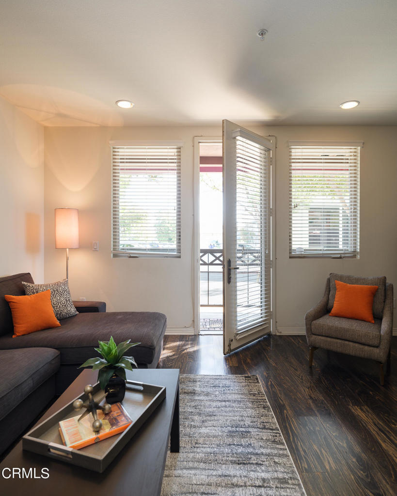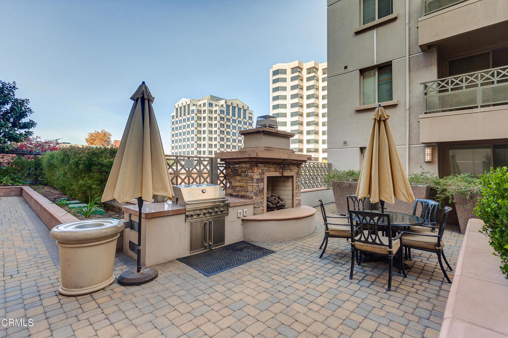 Located in the heart of Pasadena is this turnkey, first level, 1 bedroom, 2 bathroom condo ready for the new owners to call it their own! As part of the Playhouse Village, this home is in an ideal location with close proximity to the 210 Freeway, the Gold line, museums, and The Shops On Lake Avenue. Entering through the front door, one is struck by the open floor plan that showcases the bright and airy living room, the dining area and the kitchen. The kitchen features beautiful granite countertops, a custom tile backsplash, recessed lighting, a peninsula/eat-in bar, large wooden cabinets and drawers, double sinks, and KitchenAid stainless steel appliances which include the refrigerator, microwave and oven. The kitchen opens up to the dining area which features hardwood flooring, base molding, and a modern drop pendant light. The living room has recessed lighting and is highlighted by two large windows and a door that leads to a mini porch and to the front grounds. Natural light enters the home through the windows, creating a pleasant environment. Being a first level condo, one can conveniently access the street from this door. The first bathroom downstairs is located off of the front entrance and showcases hardwood flooring, base molding, a granite countertop and a custom light fixture. The laundry closet is also located off the front entrance and features a stackable washer and dryer. Upstairs, sits the second bathroom and the bedroom. The bedroom is spacious and features carpet flooring, a ceiling fan, a closet, and a sliding glass door that leads to a mini porch area, ideal for taking in fresh air or reading a book. The ensuite bathroom features tile flooring, a large vanity area, double sinks with a stone counter, recessed lighting, a toilet room, and a glass enclosure shower with tiling that extends to the ceiling. There is also a large walk-in closet in the bathroom. Another thing to mention about this home is the mezzanine located in between the first and second floor that is perfect for setting up a small desk for at-home working. There are many things to love about this home, especially all of the amenities that are included as part of the HOA which include a BBQ area, a fitness center and a recreation room. With the close proximity to Pasadena's downtown, the spacious living areas throughout the home, the private patio and the modern feel, one will not want to miss the opportunity to call this turnkey property their own!